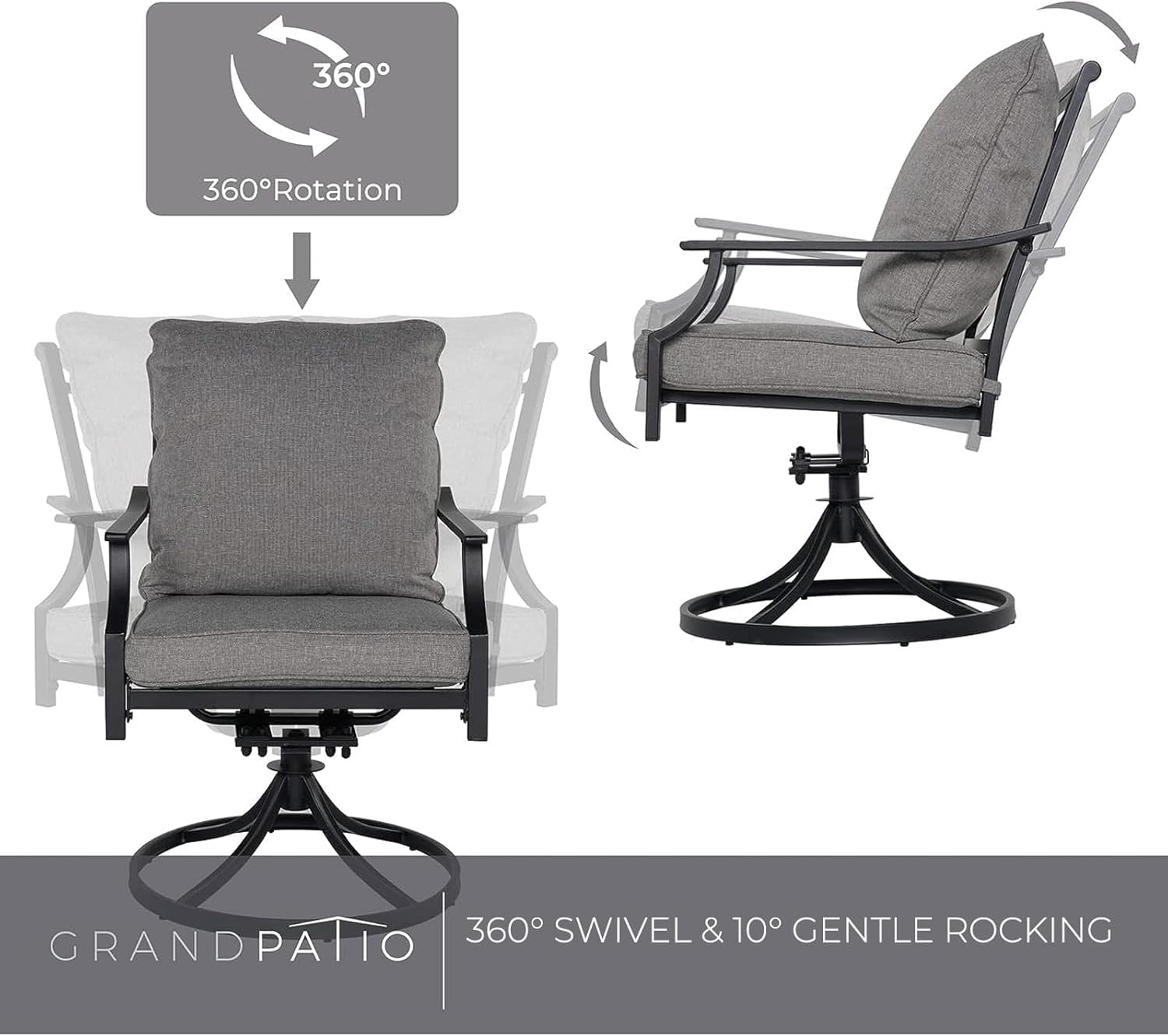 - SWIVEL & ROCKING:Our patio dining set includes smooth swivel rockers, the comfort of curved arms, and a high backrest, the 360-degree full rotation makes it easy to redirect your attention and get in and out while the 15-degree gentle rocking motion offers ideal relaxation