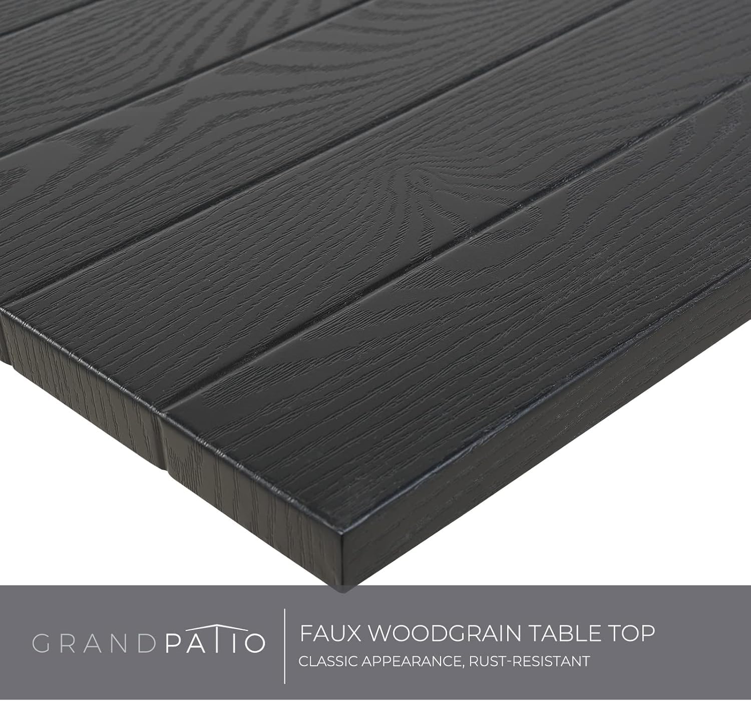 Grand patio 9-Piece Patio Dining Set for 8, E-Coated Outdoor Dining Set Swivel Patio Dining Chairs with Olefin Cushions & 1 Black Extendable Rectangular Faux Woodgrain Table for 6-8 Person