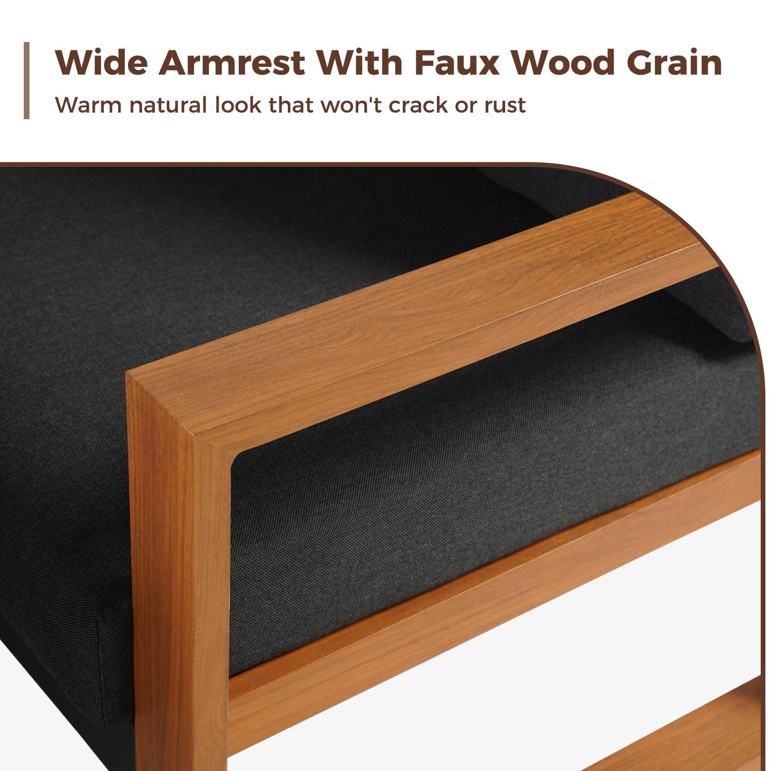 - Modern Style: This patio furniture set with natural walnut wood grain is ideal for outdoor and indoor areas, featuring a minimalist design. Its simple lines bring a modern "California-cool" style, making it perfect for a patio, deck, porch, poolside, or living room