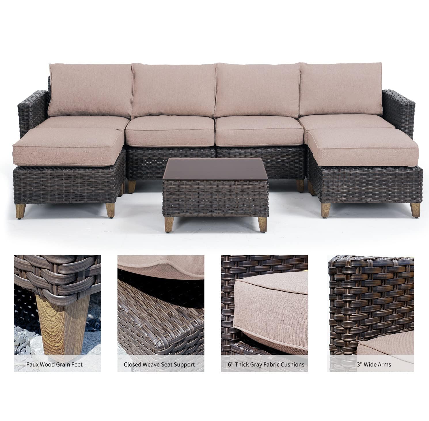 Grand patio Sofa Sets Outdoor Furniture Sets, Wicker Patio Furniture 7-Piece Sectional Sofa with Thick Olefin Cushions for Yard Garden Porch for Six (Beige Sofa Set for Six, 7 PCS)
