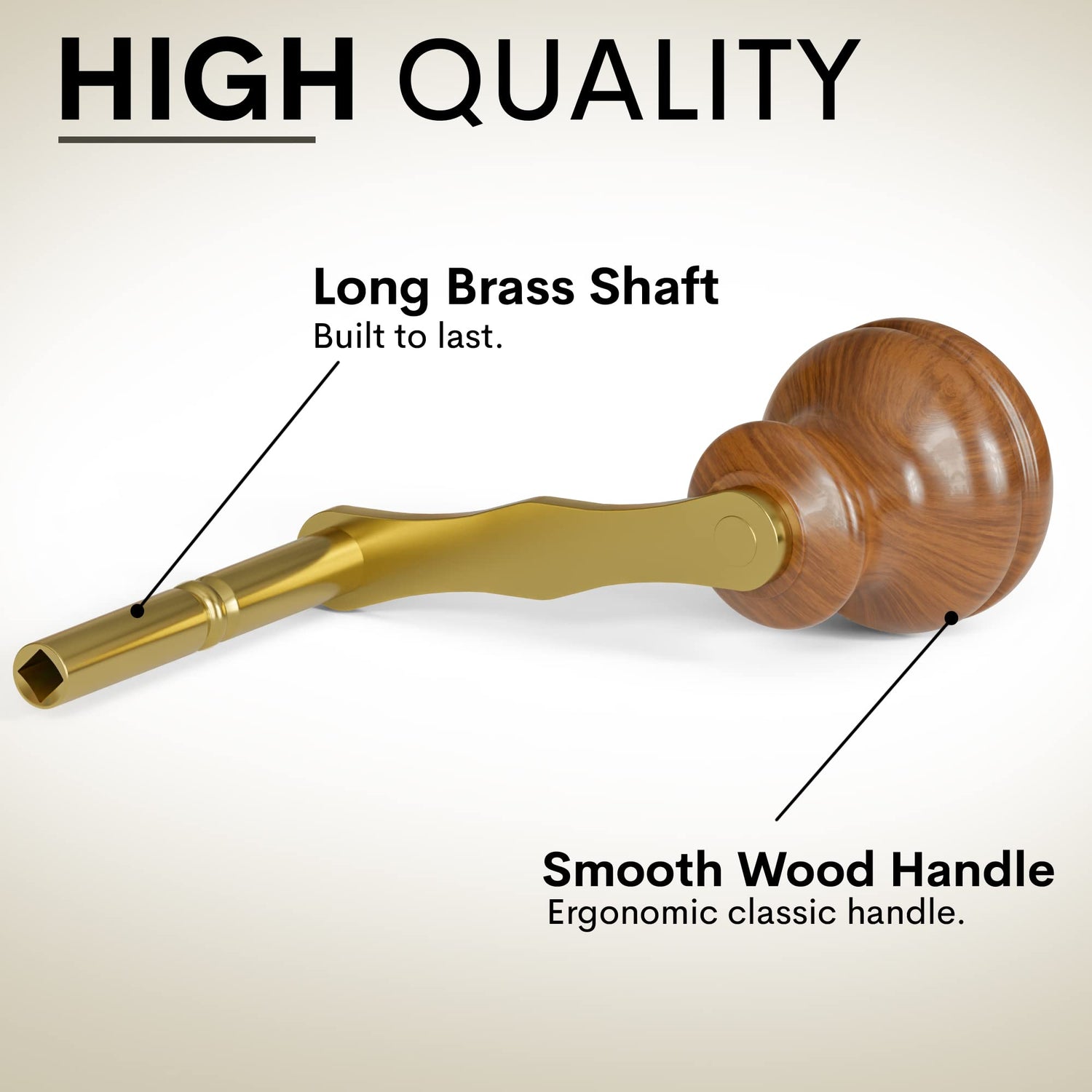 • Premium Quality; Long Brass Shaft with Wood Handle.