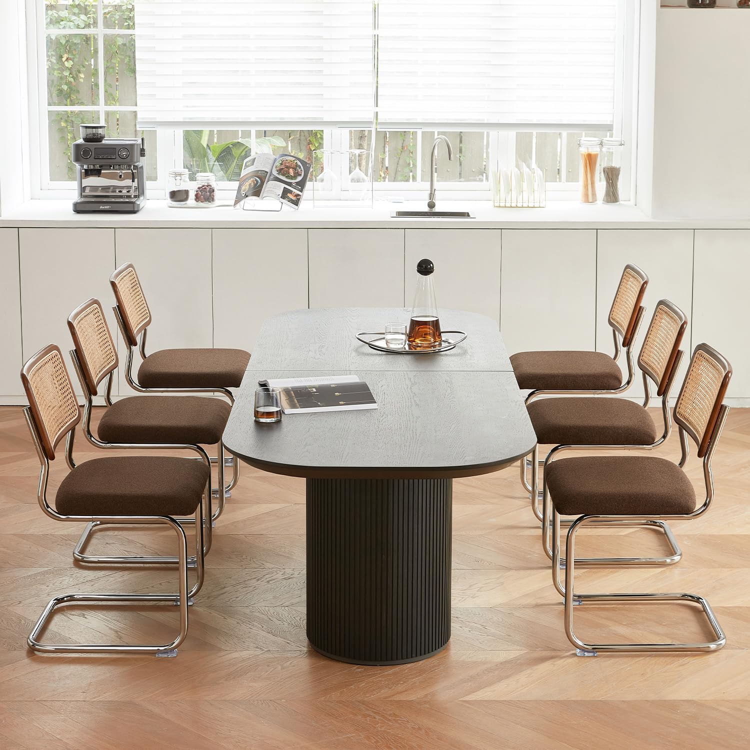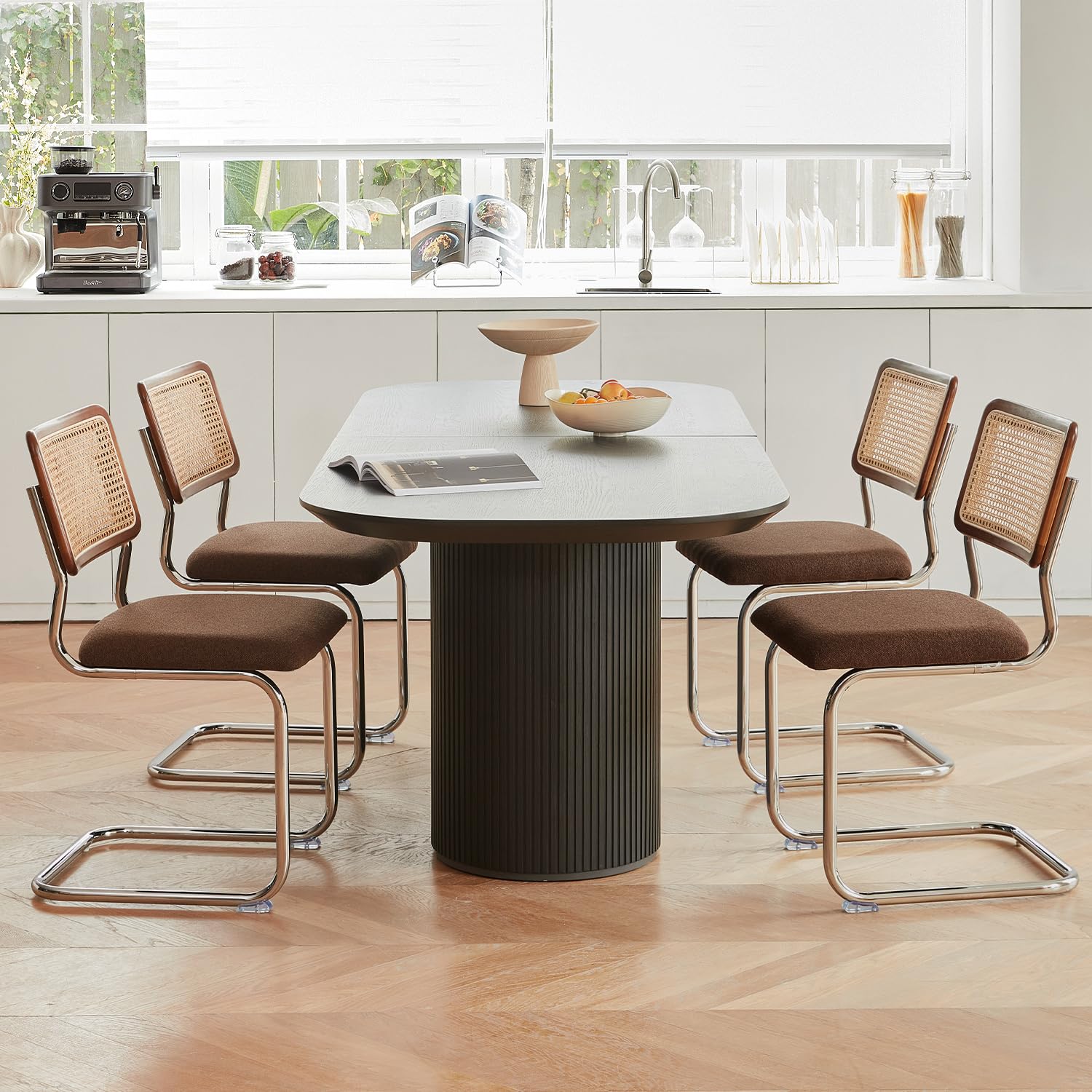 GrandNoor Brown Rattan Dining Chairs Set of 4,Wooden Mid-Century Modern Kitchen Chairs, Mesh Back Cane Dining Room Chairs, Cesca Design Chairs with Metal Chrome Legs