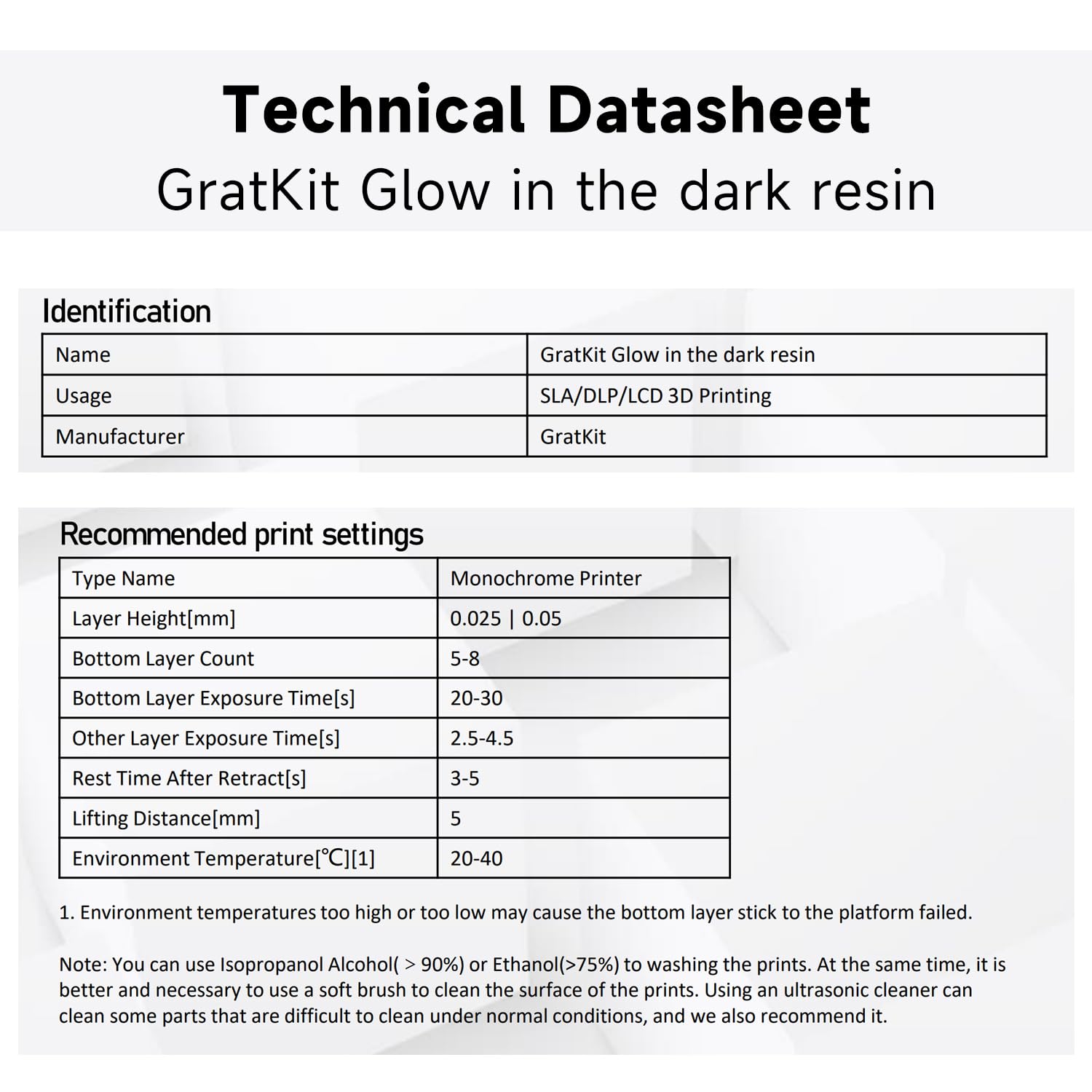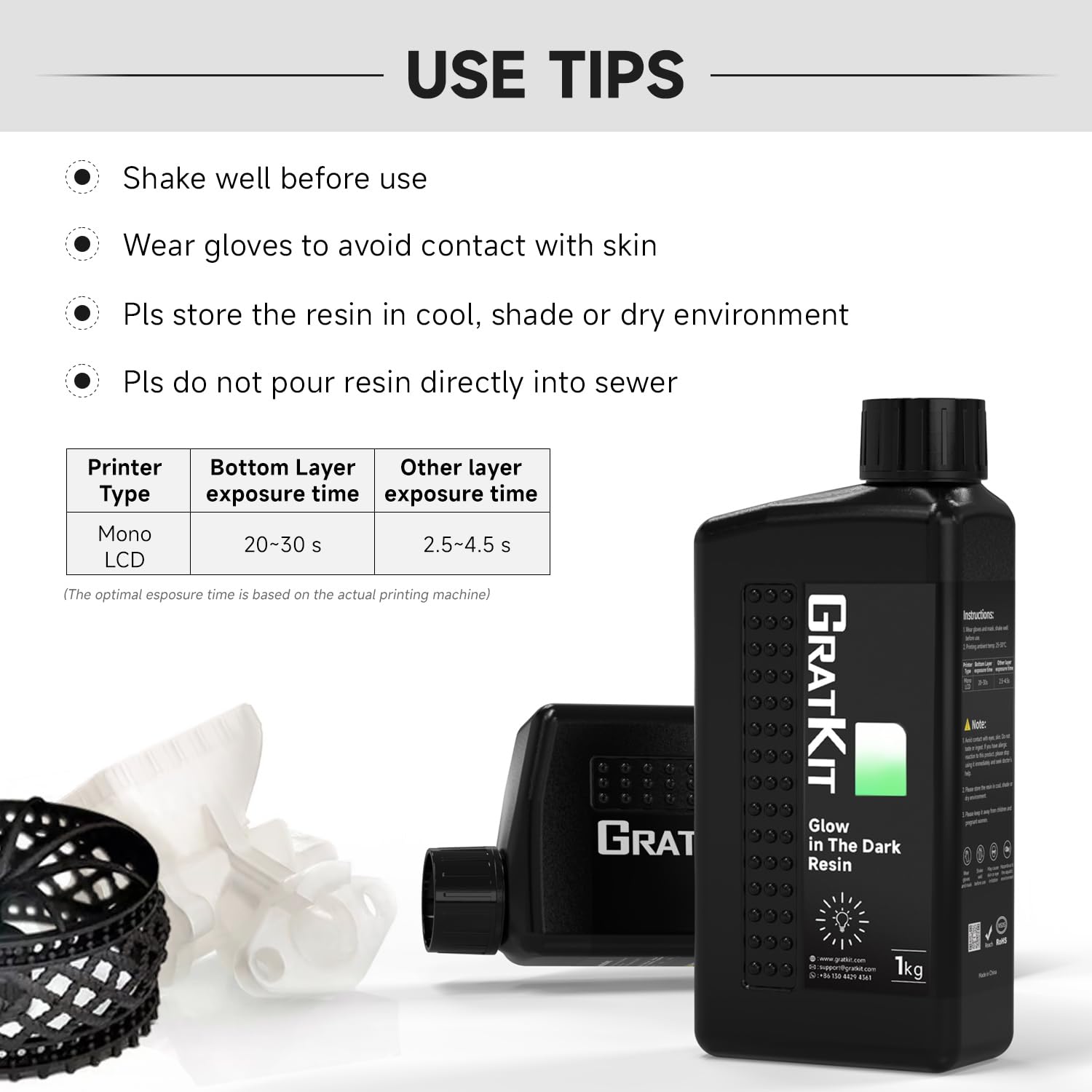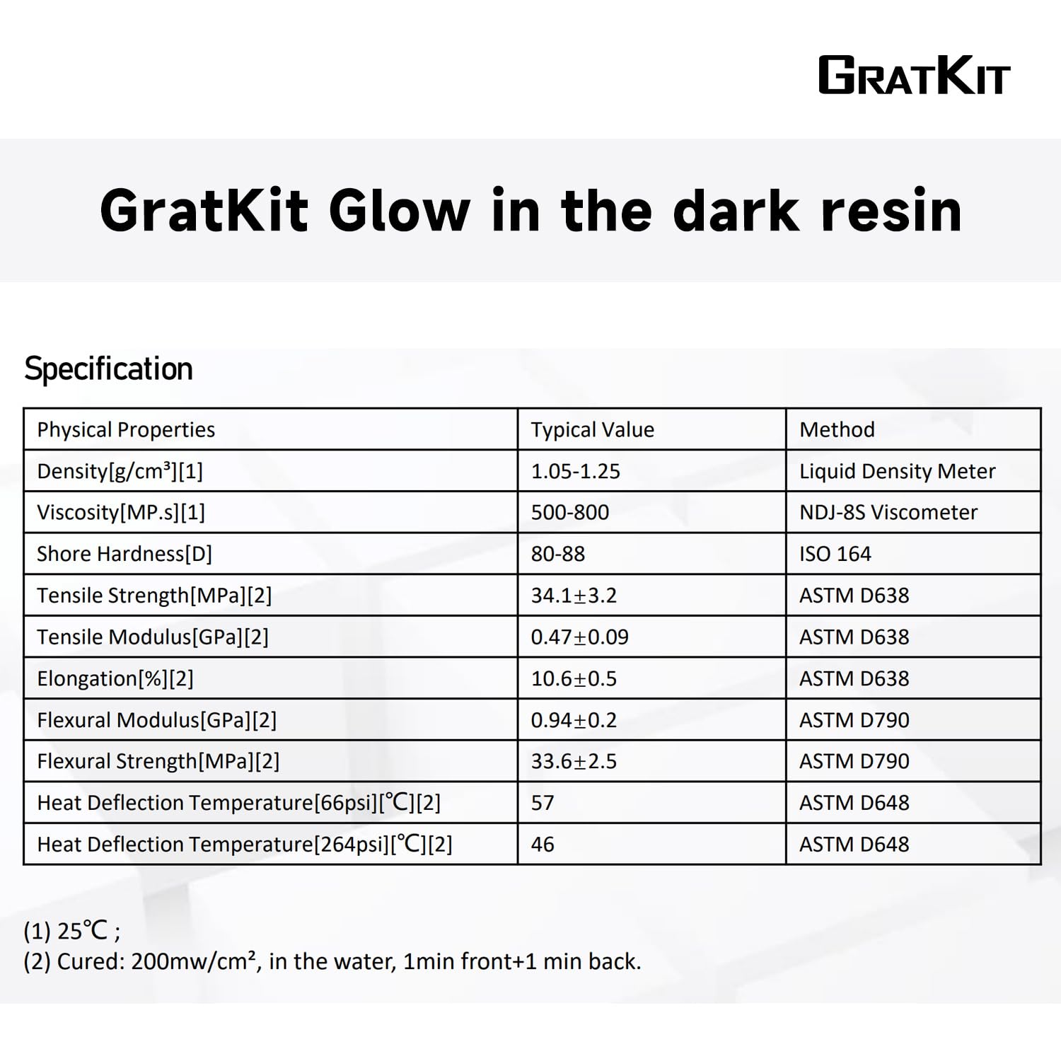 GratKit Glow Green in The Dark Resin, 405nm UV-Curing Photopolymer Resin for LCD/DLP 3D Printers, 1000g, Clear