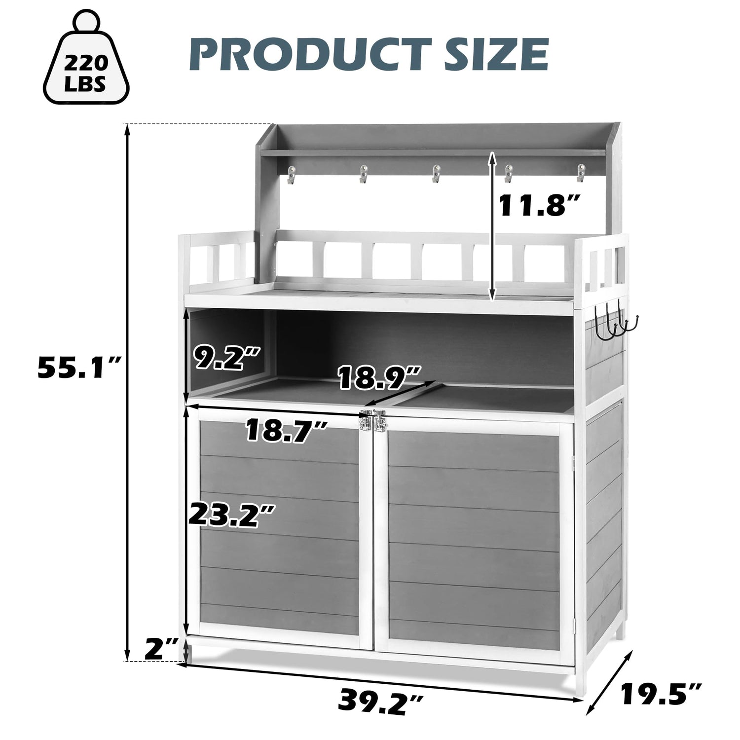 GRAVFORCE Outdoor Potting Bench Table, Garden Potting Benches for Outside Planting Work Bench Table Wooden Storage Plant Table Cabinet Gardening Table for Patio, Garden, Greenhouse, Backyard (Gray)