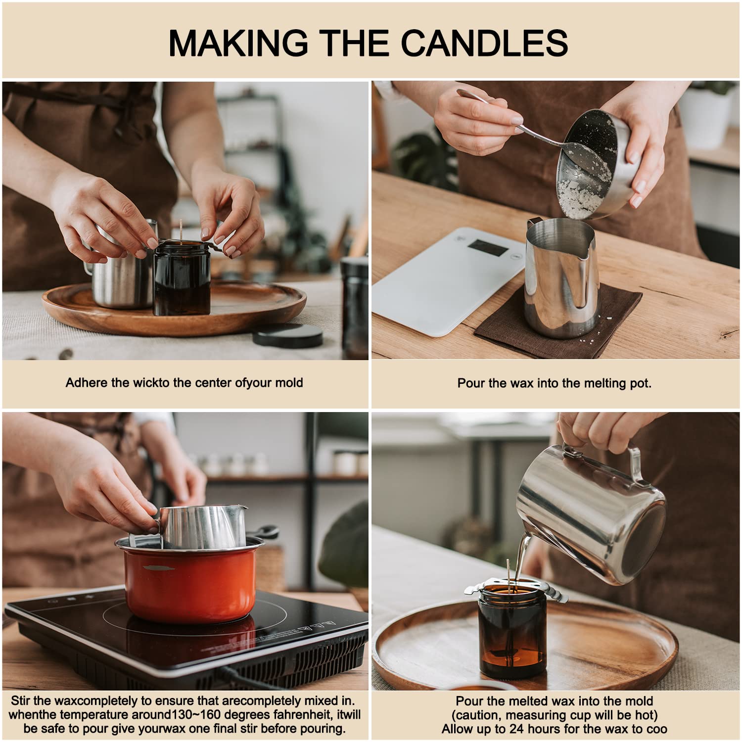 - Easy to make: Our soy wax flakes are easy to make candles with, you just need to melt them with heat. If you have new ideas, you can mix spices or dyes to your liking and heat them to 180 to 185 degrees
