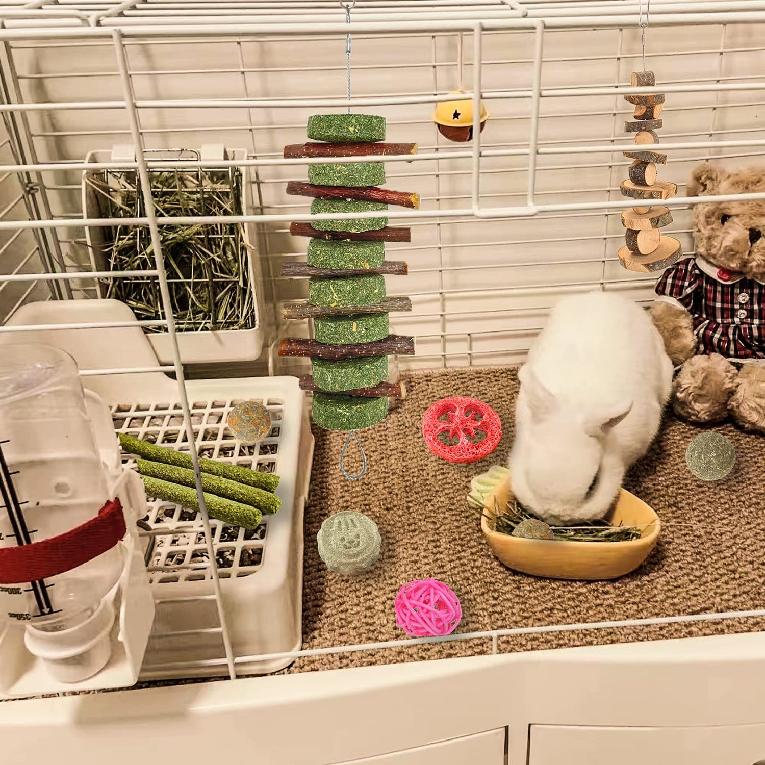 - 【WIDE USES 】These bunny chew toys can be hang in the cages with hooks,fit for rabbits,bunny, hamsters, guinea pigs, squirrel, rabbits,chinchillas, parrot,, providing more fun for your pets.