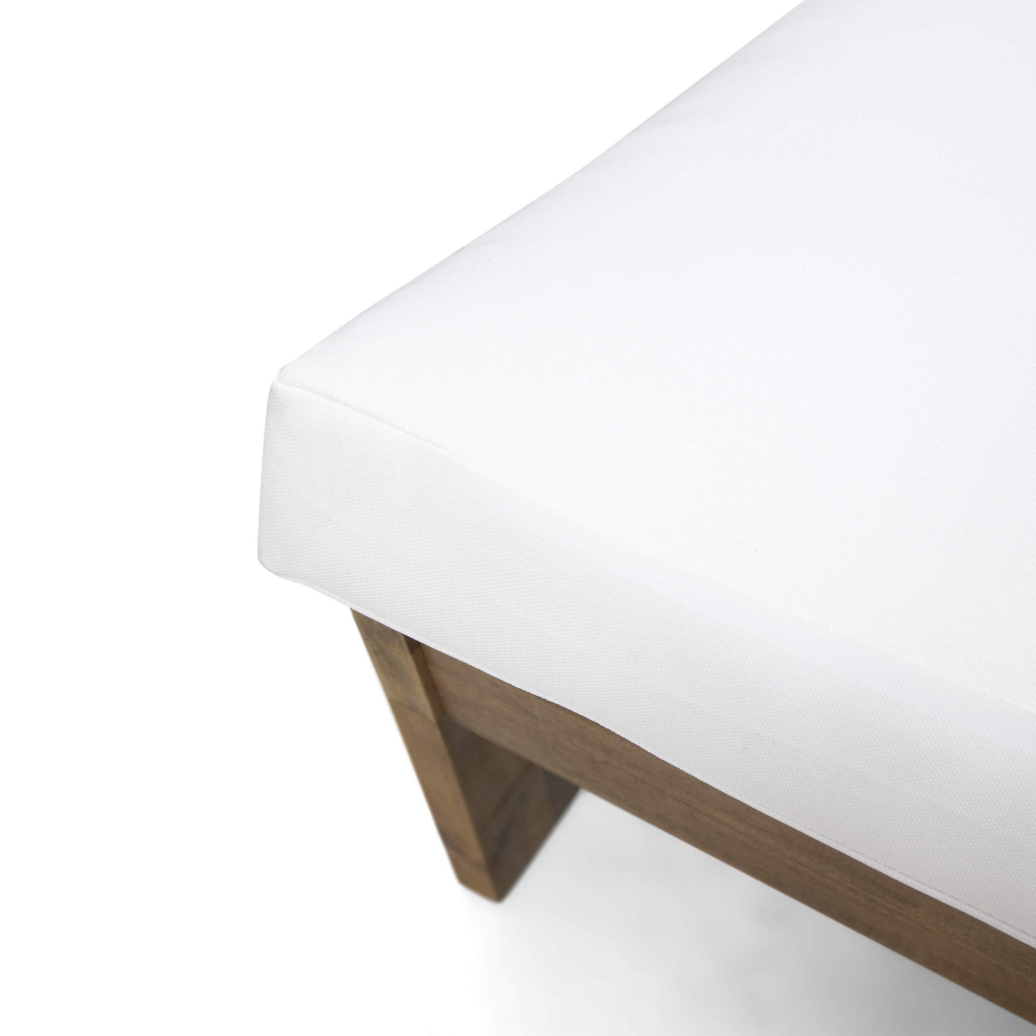 Great Deal Furniture Kaitlyn Outdoor Acacia Wood Loveseat with Cushions, Teak and White