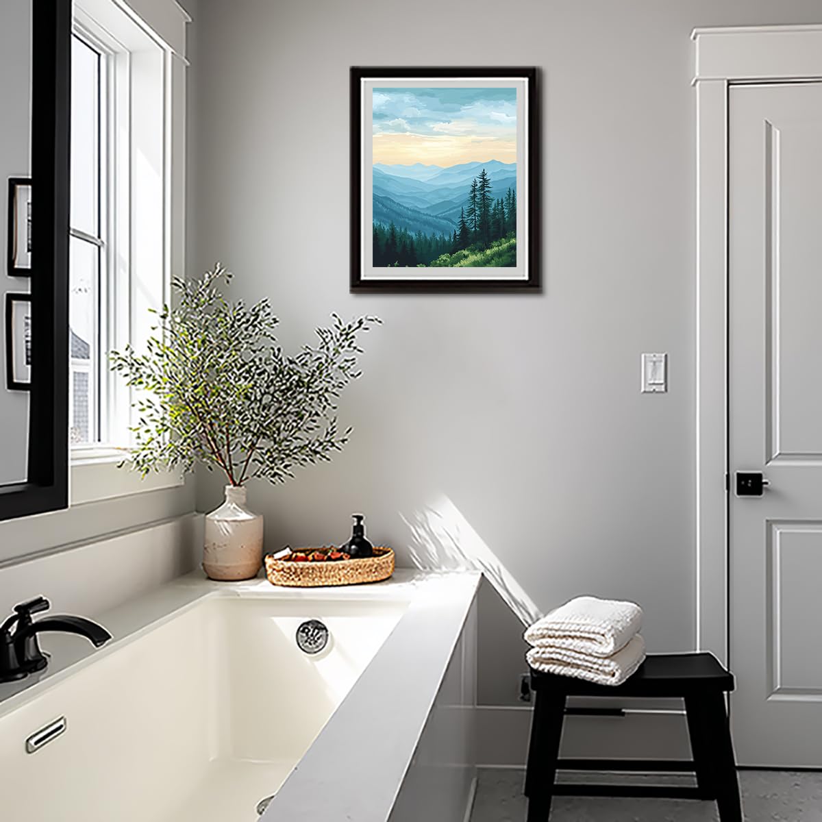 Great Smoky Mountain Paint by Numbers for Adult, Green Forest Paint by Number Kits for Beginner, Mountain Scenery DIY Acrylic Oil Painting for Gift Home Wall Decor(16×20inches, Unframe)