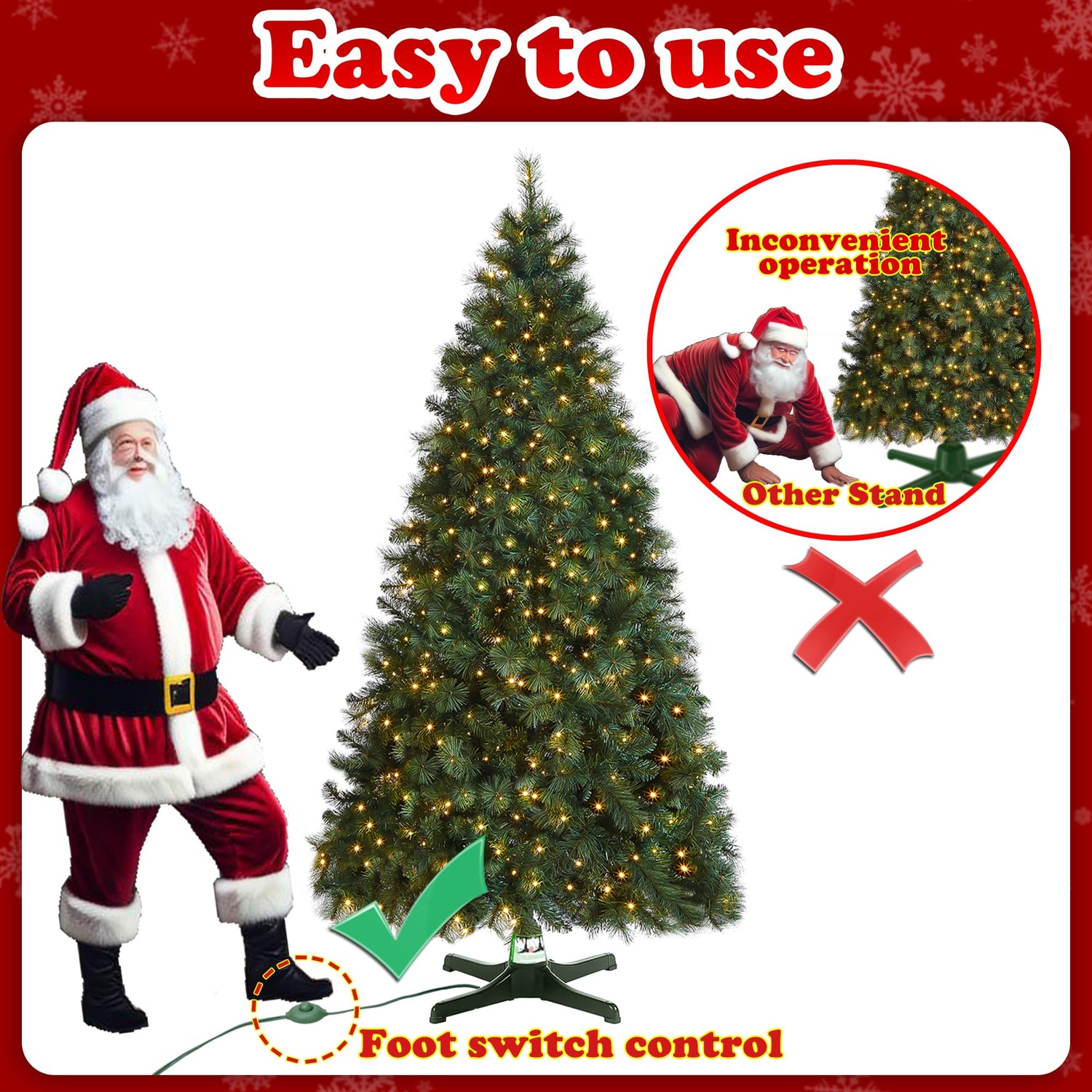 - Electrical Features: Equipped with three two-prong outlets, the stand can power up to 625 watts of Christmas lights. The convenient on/off foot pedal switch is connected to a 7-foot extension cord, allowing you to control the stand without bending down.