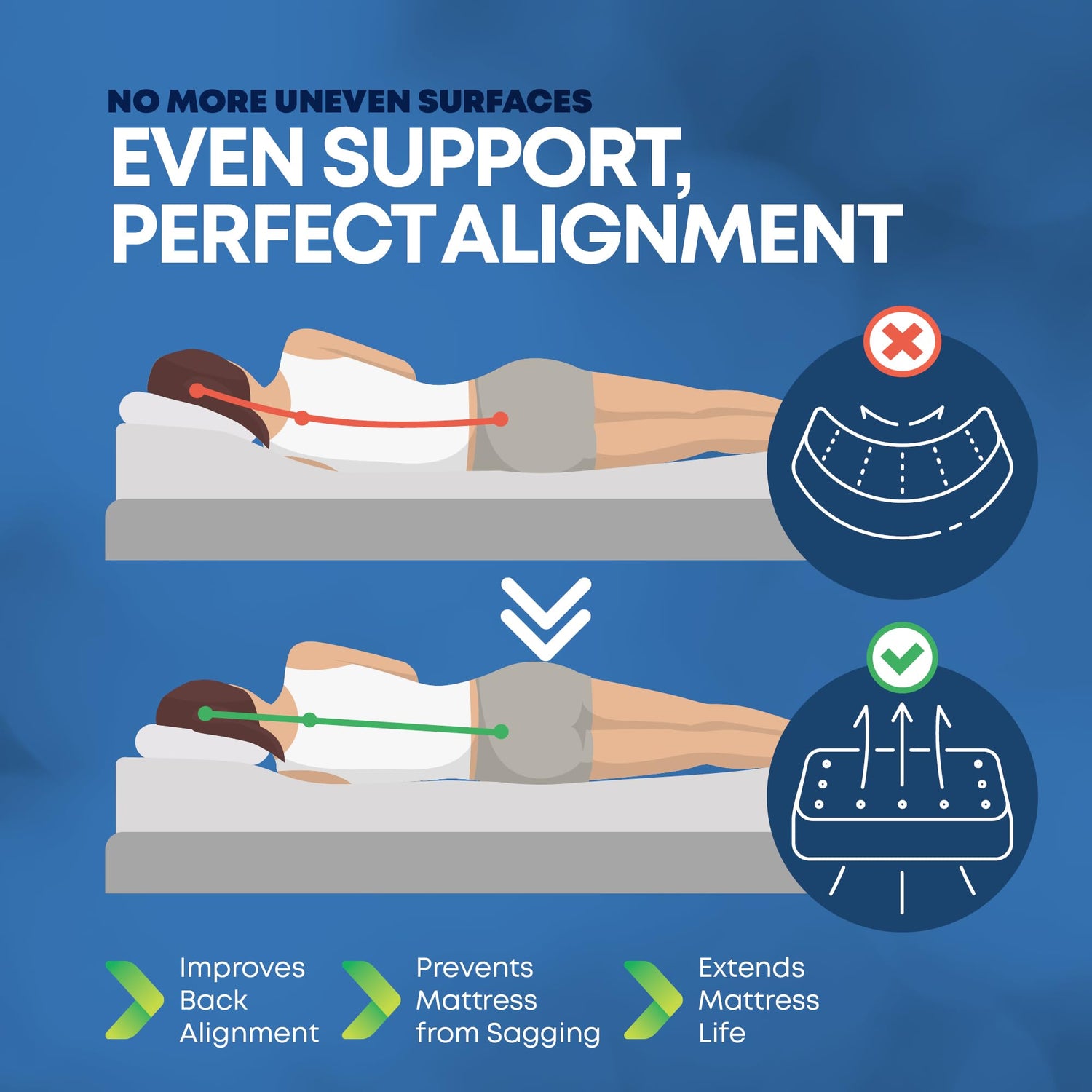 - STURDY SUPPORT TO PREVENT SAGGING – A sagging mattress can ruin your sleep. This firm supportive bed board keeps your mattress flat and even, stopping dips and lumps before they start. Enjoy a comfortable, well-supported bed that helps you wake up feeling rested.