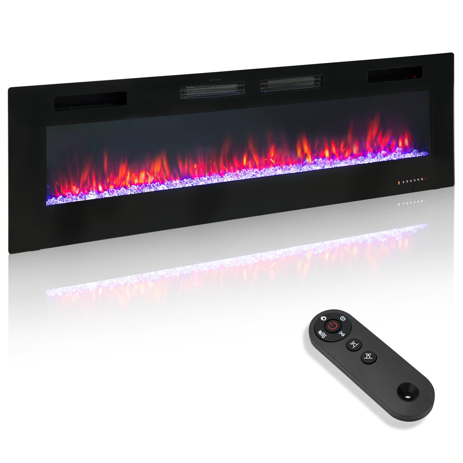 - 【Realistic Flame Effect】The internal LED lights help to provide a bright and realistic flame effect; You have the log set and crystal stones flame bed to meet your individual needs; The flame effect can also be operated with or without heat which can be used all year round