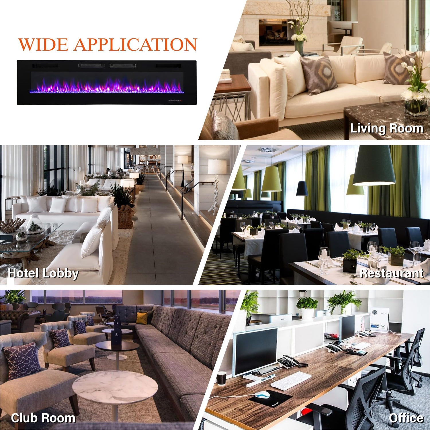 - 【Super thin easy to Install】 This electric fireplace can be recessed in wall or wall mounted. Product Size 3.19"D x 72"W x 18.1"H, the fireplace heater is only 3.2" thick so it is super thin. Fit for 2 x 4 & 2 x 6 Stud. The electric fireplace inserts will create warmer and more comfortable atmosphere by your favourite style for your living room or bedroom. Please kept fireplace heater away from other appliances