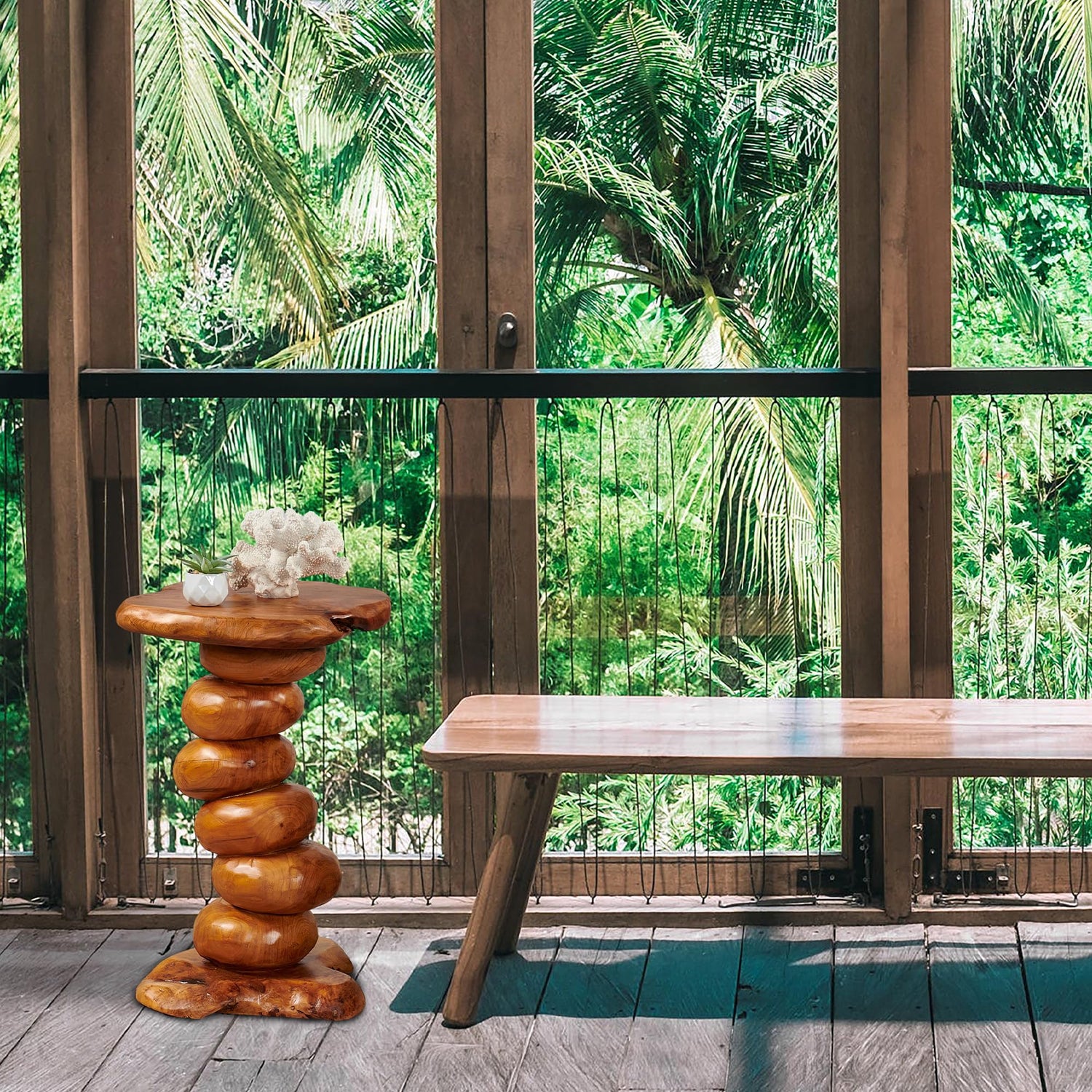 Greenage Cedar Roots Multibeads Stands End Table 13.8“x13.8”x23.6 Wooden Live Edge Side Table for Living Room Bedroom Home Decor Courtyard Wooden Stool