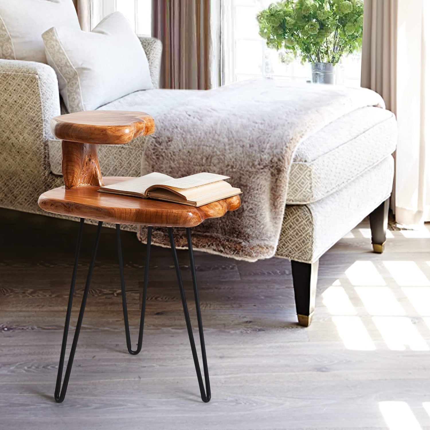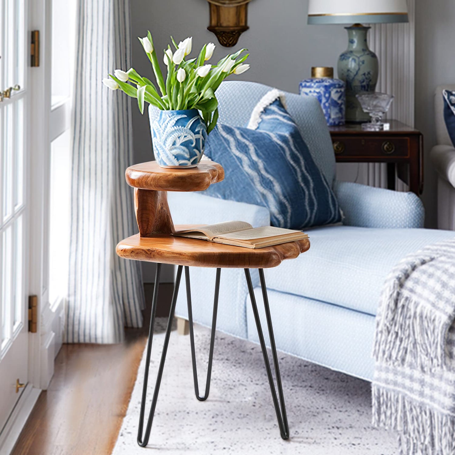 Greenage Solid Cedar Roots Dual Top End Table, 18" x 16" x 26" High Plant Stand, Sturdy Side Table Live Edge Coffee Table for Living Room Bedroom Home Decor