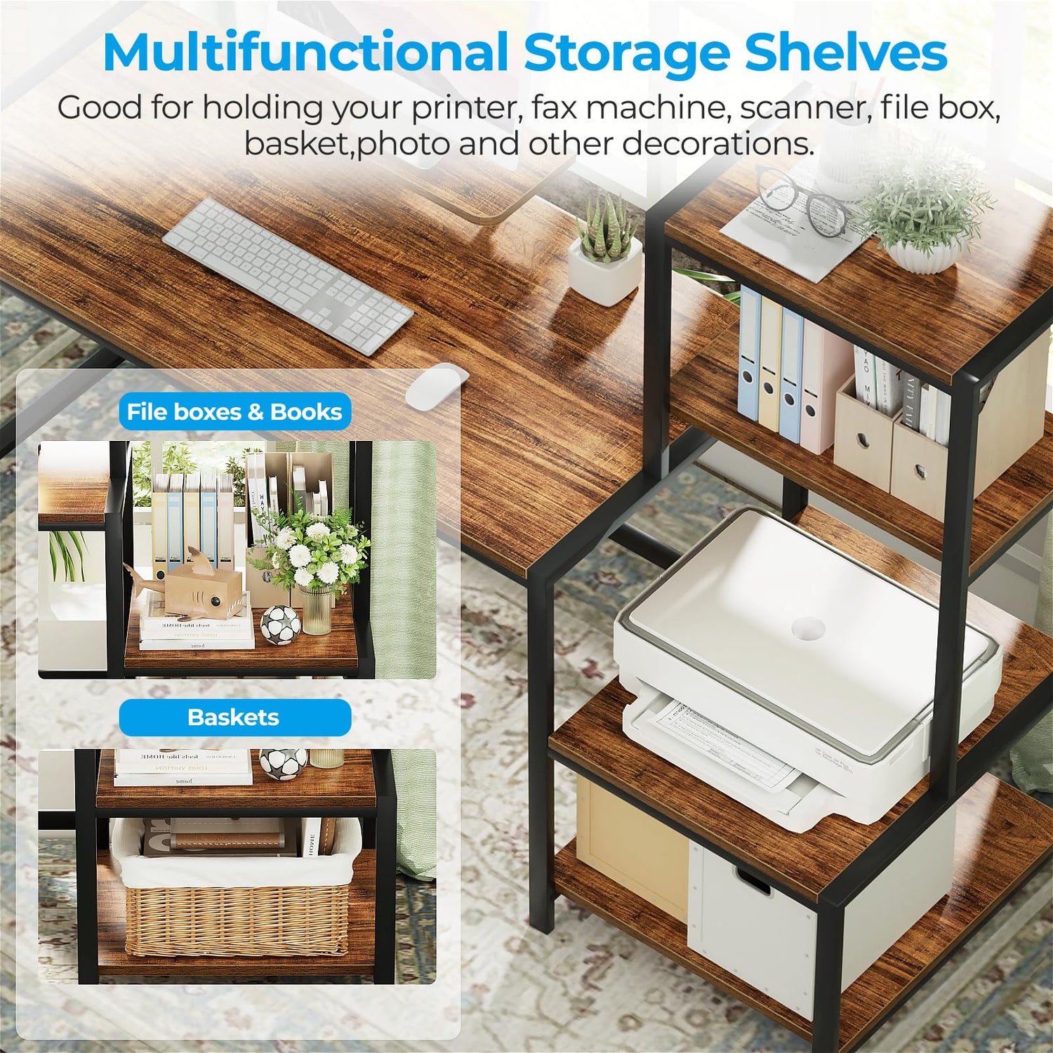- Adjustable & Versatile Shelves: Featuring 4 reversible storage shelves, the desk can adapt to your space layout—whether on the left or right. Ample storage keeps your workspace clutter-free