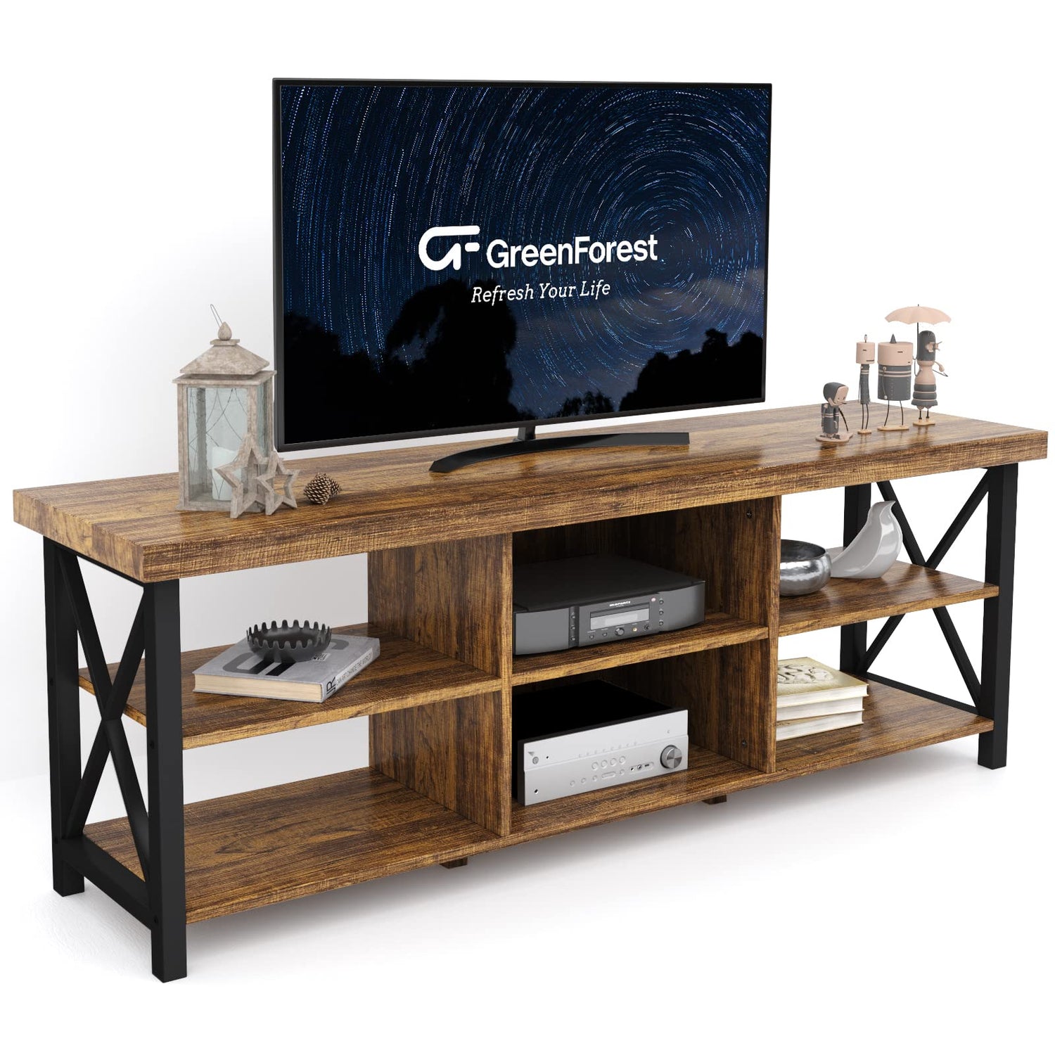 - Reinforced X-Shape Side Structure: The X-shape side structures provide enhanced stability and durability, making this TV stand a sturdy choice for any living space. The industrial design elements add a touch of modern farmhouse style, seamlessly blending with various decor styles
