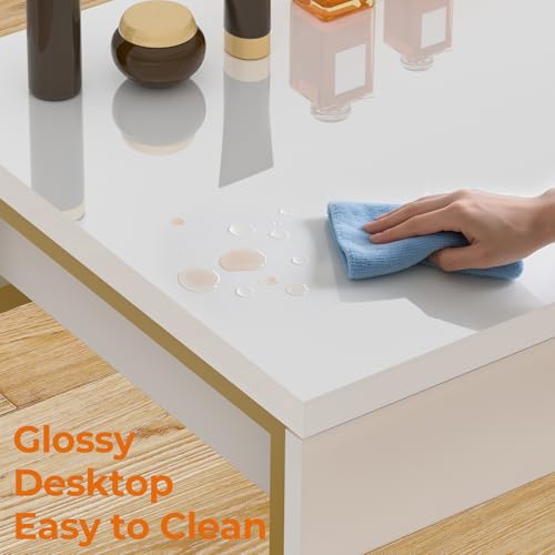 - Desk with Glossy White Tabletop: The tabletop is made of high-gloss, smooth, easy-to-clean hard lacquer, so that any cosmetics stained on the tabletop can be easily wiped off and remain clean even after long periods of use