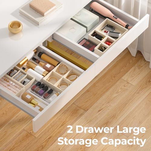 - Makeup Desk with Drawers: Two 14.3''D x 15''W Multi-function drawers provide large storage space and keep your desktop tidy at all times, the drawers open and close with wheels on both sides, which makes the drawers easy and smooth
