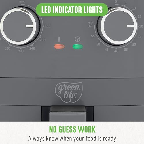 GreenLife 4.5QT Mechanical Air Fryer, PFAS-Free Ceramic Nonstick Crisper Drawer, Adjustable Temperature Timer Dial, LED Indicator, Holiday Gifting, Dishwasher Safe, Compact Kitchen Essential, Graphite