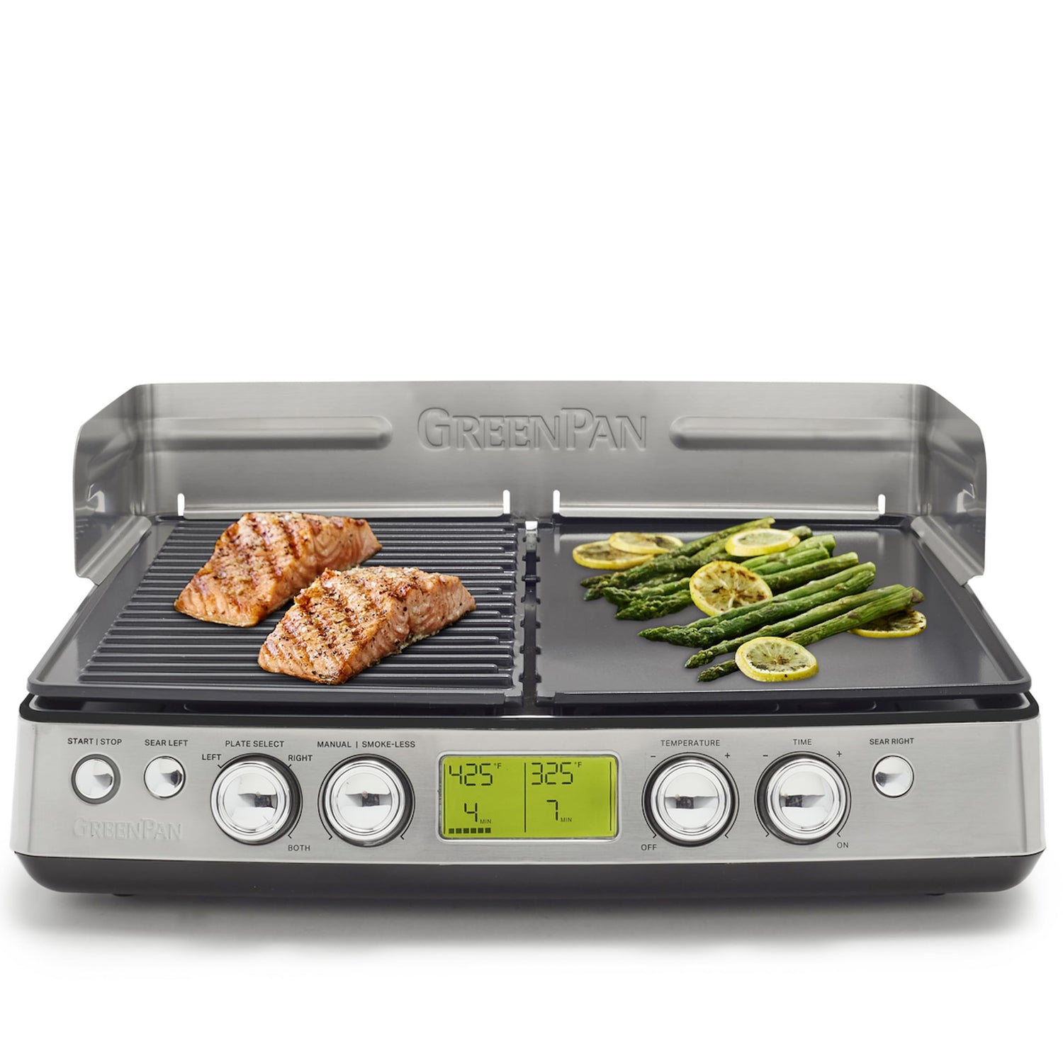 GreenPan Elite XL Smoke-less Grill and Griddle, Healthy Ceramic Nonstick Interchangeable/Removeable Cast Aluminum Plates, Indoor BBQ Sear Sizzle, LCD Display, Splash Guard, Drip Tray, PFAS-Free, Black