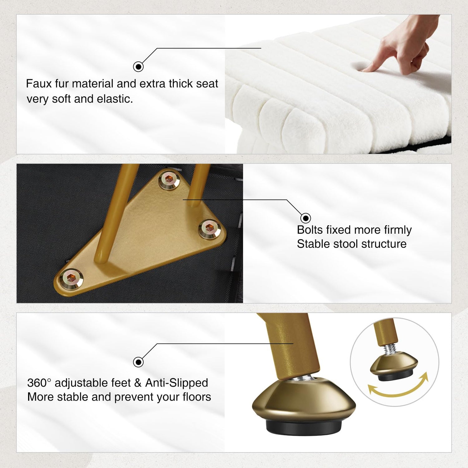 Greenstell Vanity Stool Chair Faux Fur with Storage, 15.7"L x 11.8"W x 19.4"H Soft Ottoman 4 Metal Legs with Anti-Slip Feet, Furry Padded Seat, Modern Multifunctional Chairs for Makeup, Bedroom White