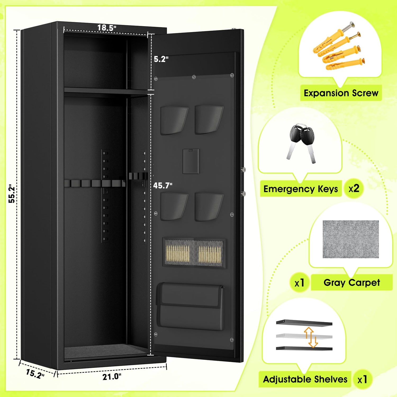 - [Easy to Install and Service]Greenvelly long gun cabinet comes with installation instructions. Even if you don't have any DIY experience, you can easily assemble the rifle gun safe.And we'll respond to your questions in a timely manner.