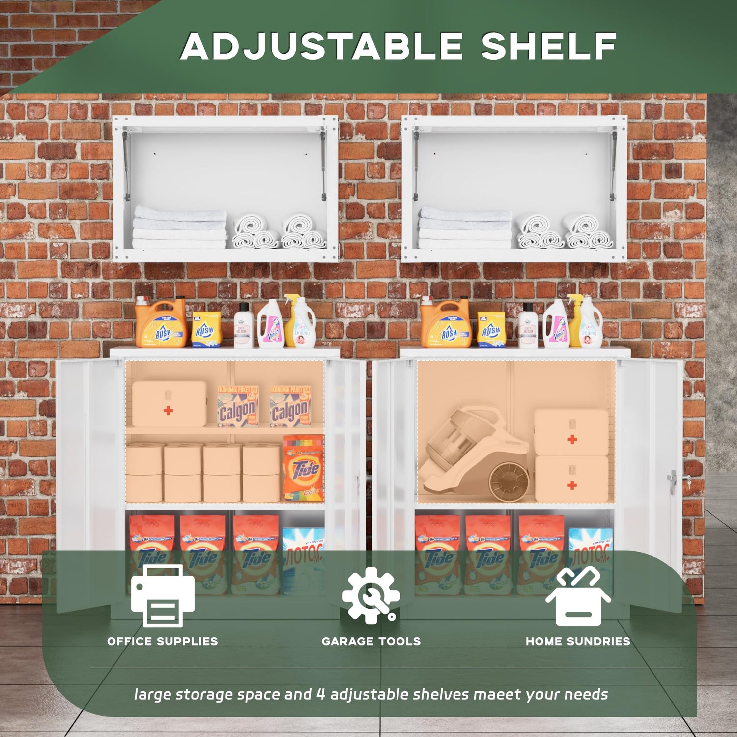 Greenvelly Metal Storage Cabinet, 42” Metal Locking Cabinet with Doors and 2 Adjustable Shelves, Small Steel Cabinet with Lock for Office, Garage, Home, School (White)