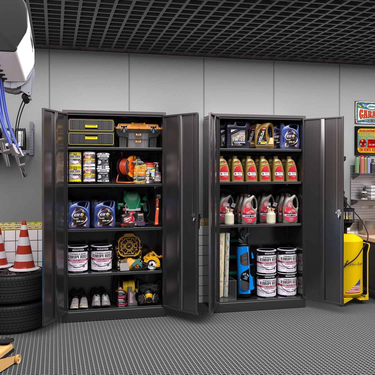 - 【Upgrading Garage System】 Greenvelly Tall Locker Organizer Steel Cabinets adopt a newly upgraded garage mounted storage system to provide safer protection for your important items and files. Multifunctional business metal filing cabinet, suitable for home office, garage, and school. The tall steel garage cabinet is equipped with 2 keys to prevent loss.