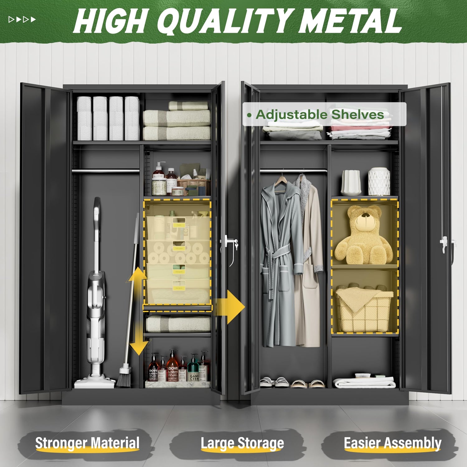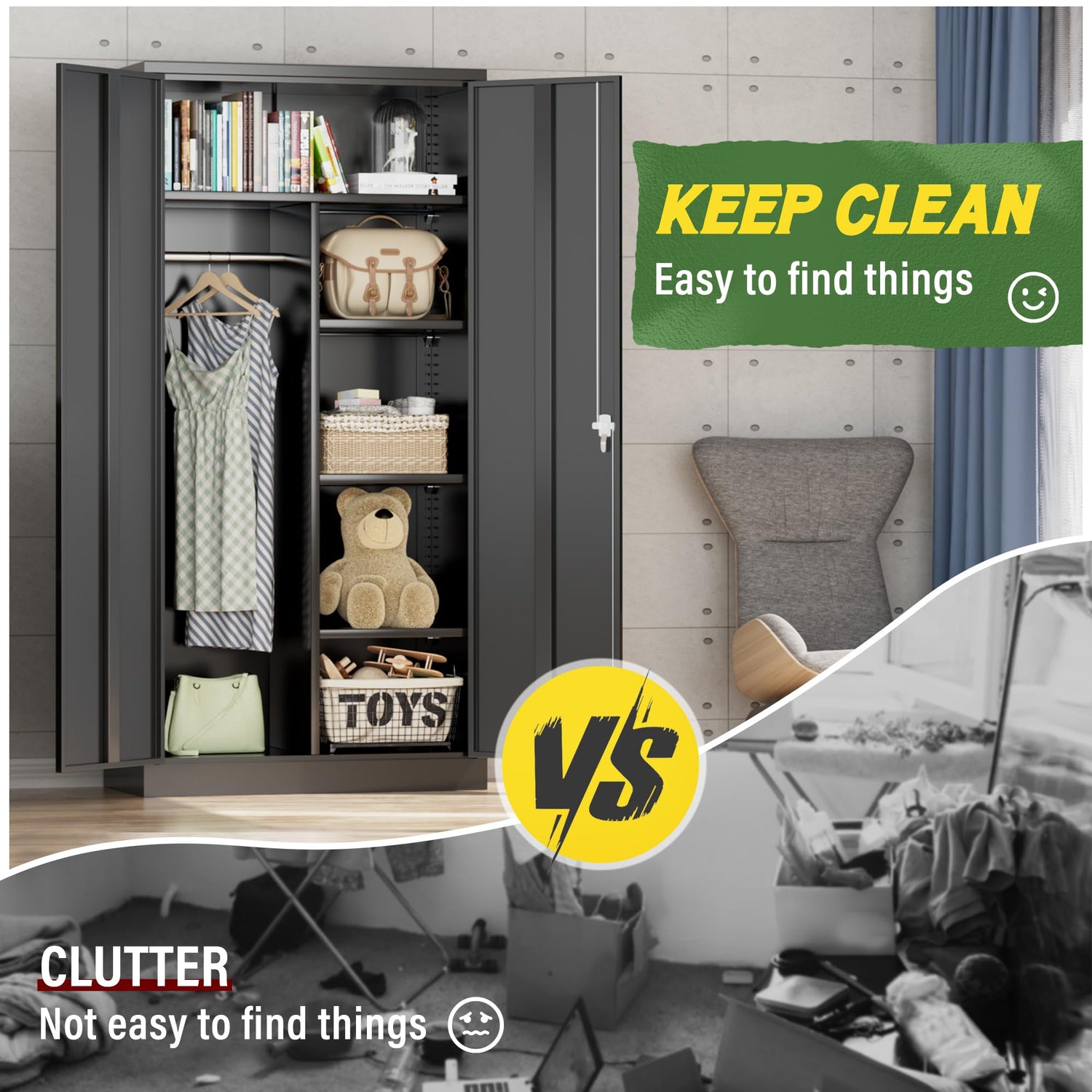 - [Durable Metal Material] Greenvelly metal wardrobe is a fully steel cabinet with a very sturdy structure.is not easily deformed.The surface of the wardrobe closet is coated with a friendly coating, which is more wear-resistant and moisture-proof than wooden cabinets.Then the metal cabinet is a better choice for storing in home, office, garage, school, shop, warehouse.
