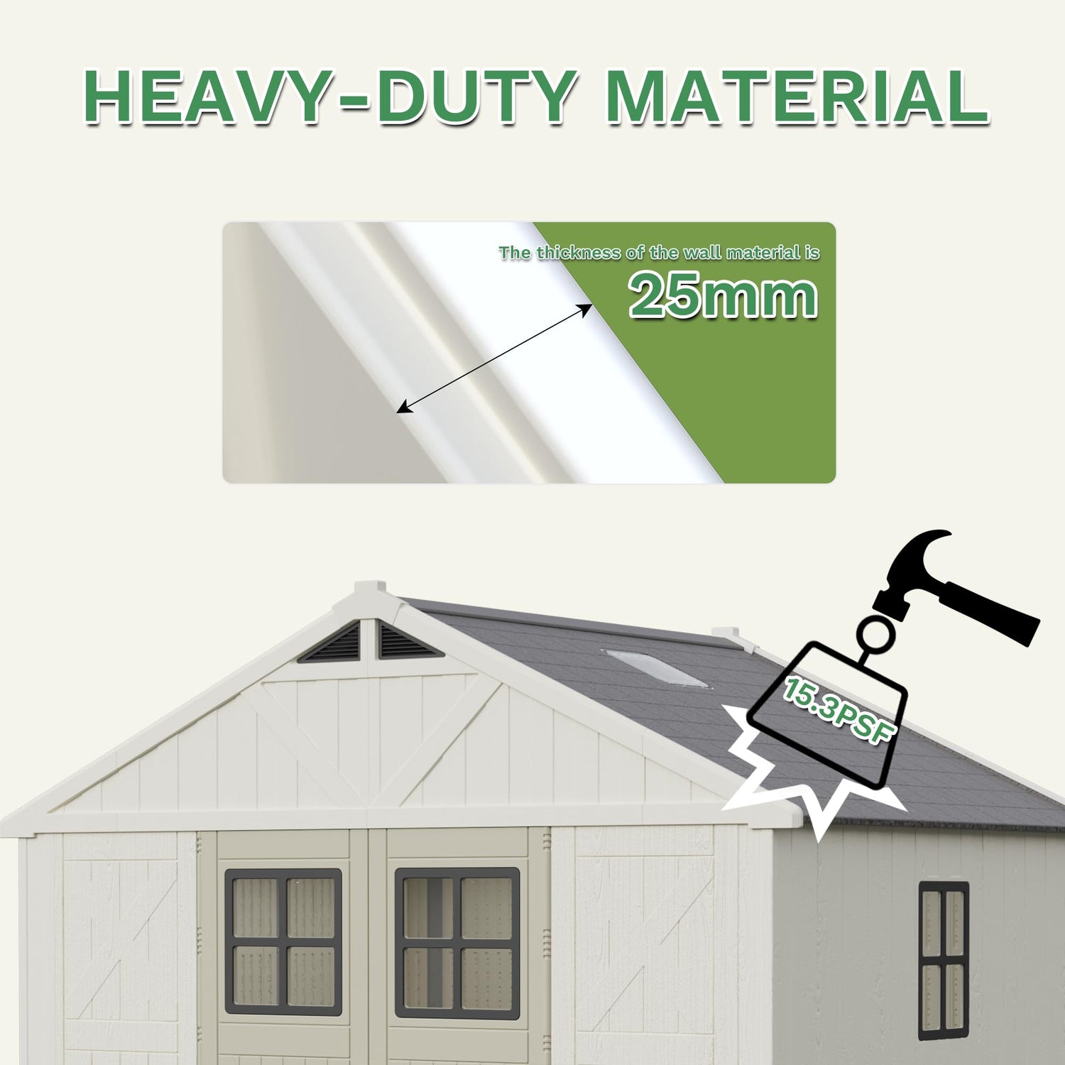 Greesum 10×8 FT Plastic Outdoor Storage Shed with Floor and Lockable Door, Resin Sheds with Windows and Skylights, Weather Resistant Organization for Garden, Lawn, Pool Supplies, Beige