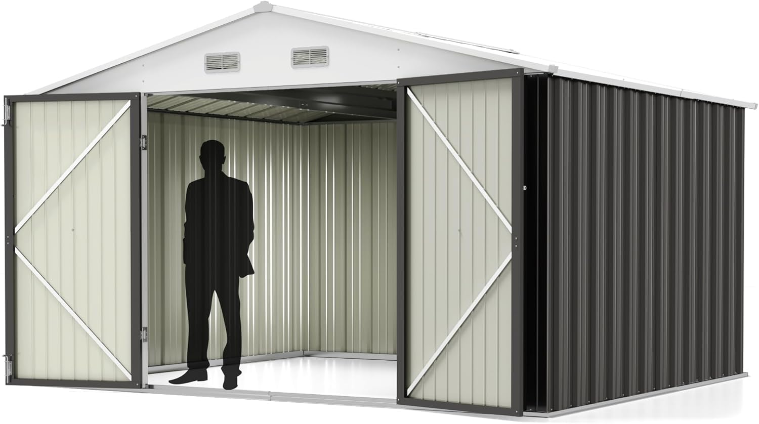 Greesum 10x8FT Outdoor Storage Shed, Utility Tool Shed Metal Storage Garden Shed with Door & Lock for Patio Storage, Gray