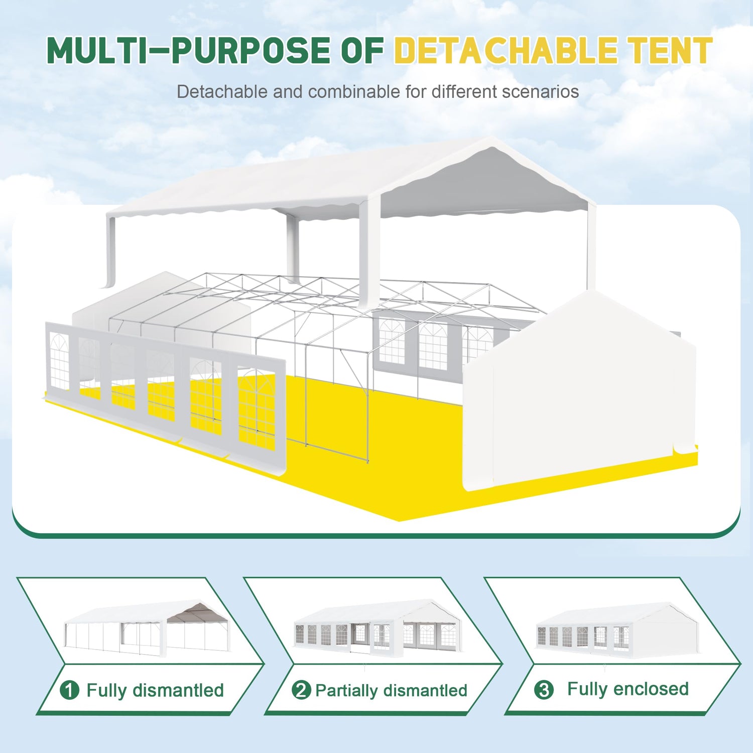 Greesum 20X40 Outdoor Canopy Tent Patio Camping Heavy Duty Gazebo Shelter Party Wedding BBQ Events with Side Removable Walls, Waterproof Shelter, White