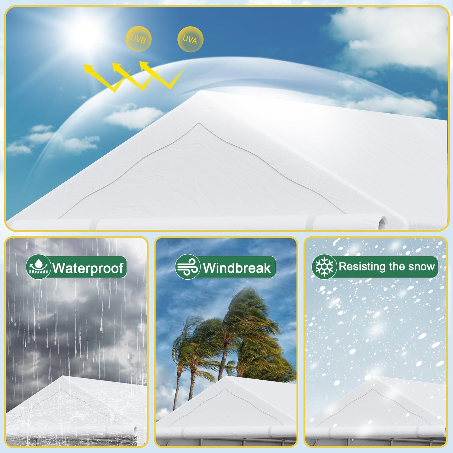 - HIGH QUALITY MATERIAL: The canopy is made of polyethylene, which is water and UV resistant. The metal frame is coated with anti-rust and anti-corrosion powder to ensure the longevity of the party canopy.