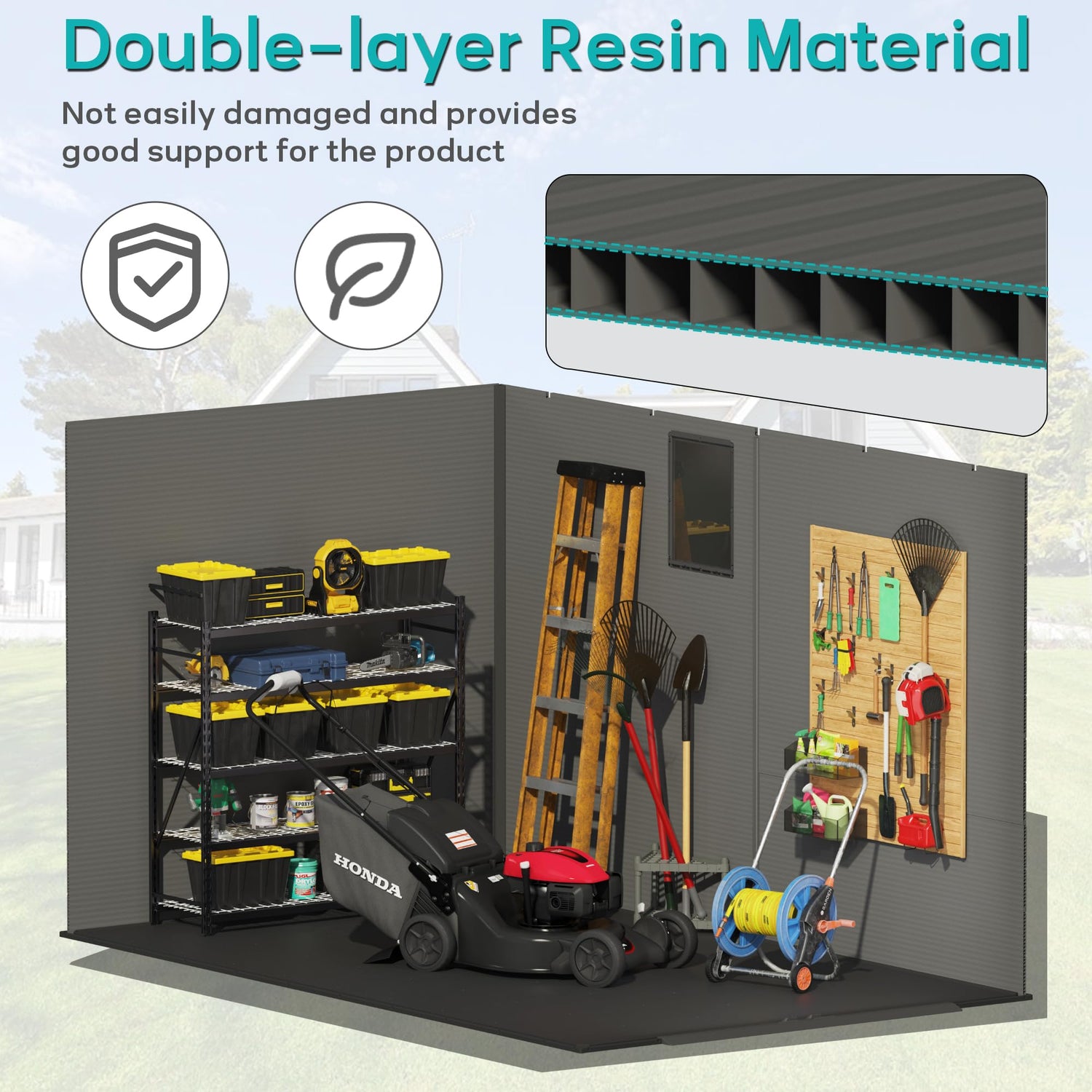 - Durable Double-Layer Resin Construction: This heavy-duty outdoor storage shed features extra-thick double-layer resin panels, a floor, and bright windows for natural lighting. Designed to resist bending, punctures, and harsh weather for long-lasting use.