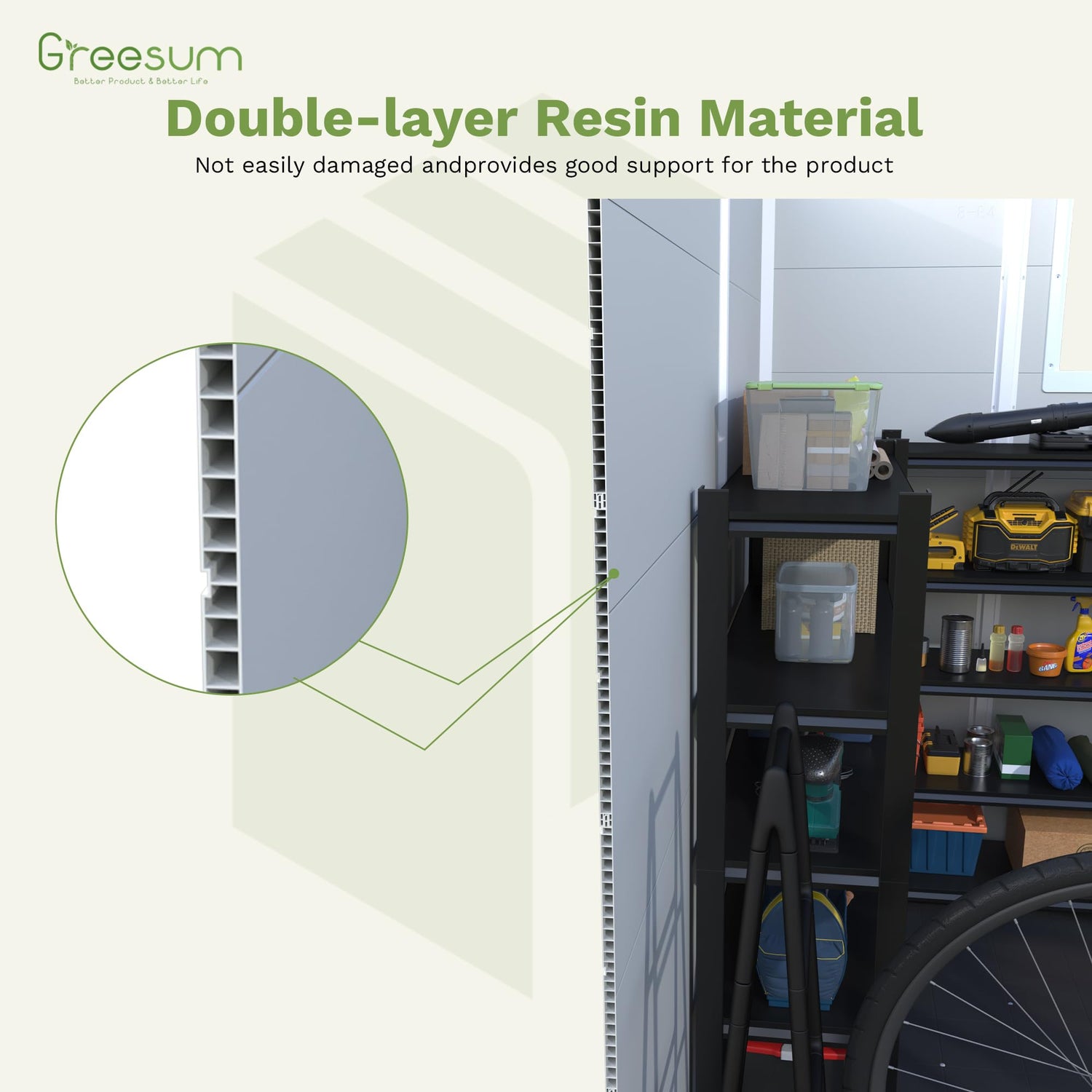 - Durable Double-Layer Resin Construction: This heavy-duty outdoor storage shed features extra-thick double-layer resin panels, a floor, and bright windows for natural lighting. Designed to resist bending, punctures, and harsh weather for long-lasting use.