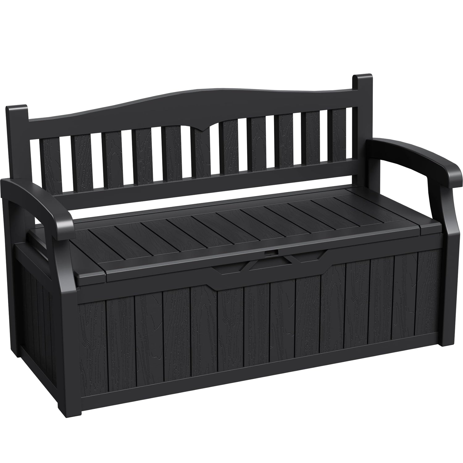 Greesum 80 Gallon Storage Bench Outdoor Deck Box with Armrest, Patio Furniture,Lockable, Waterproof and UV Resistant, Suitable for Garden, Pool, Black