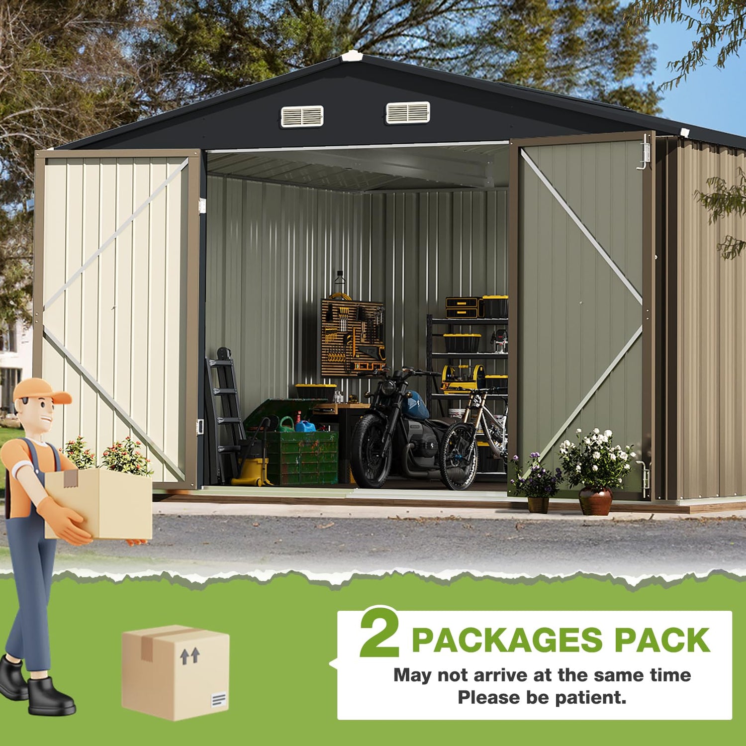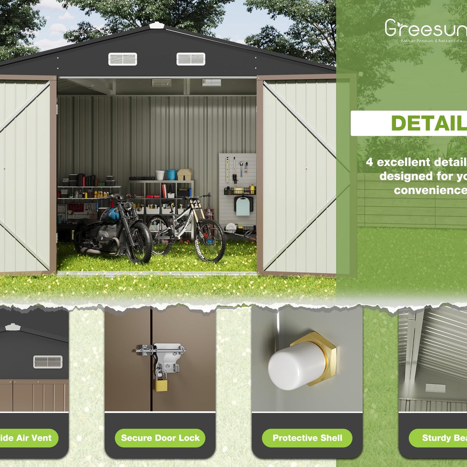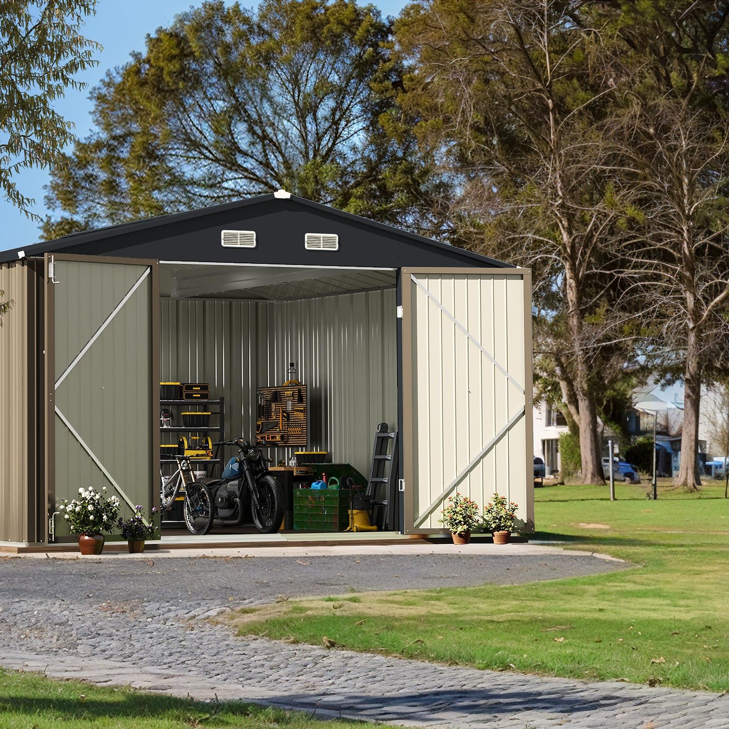 Greesum Metal Outdoor Storage Shed 10FT x 10FT, Steel Utility Tool Shed Storage House with Door & Lock, Metal Sheds Outdoor Storage for Backyard Garden Patio Lawn (10' x 10'), Brown