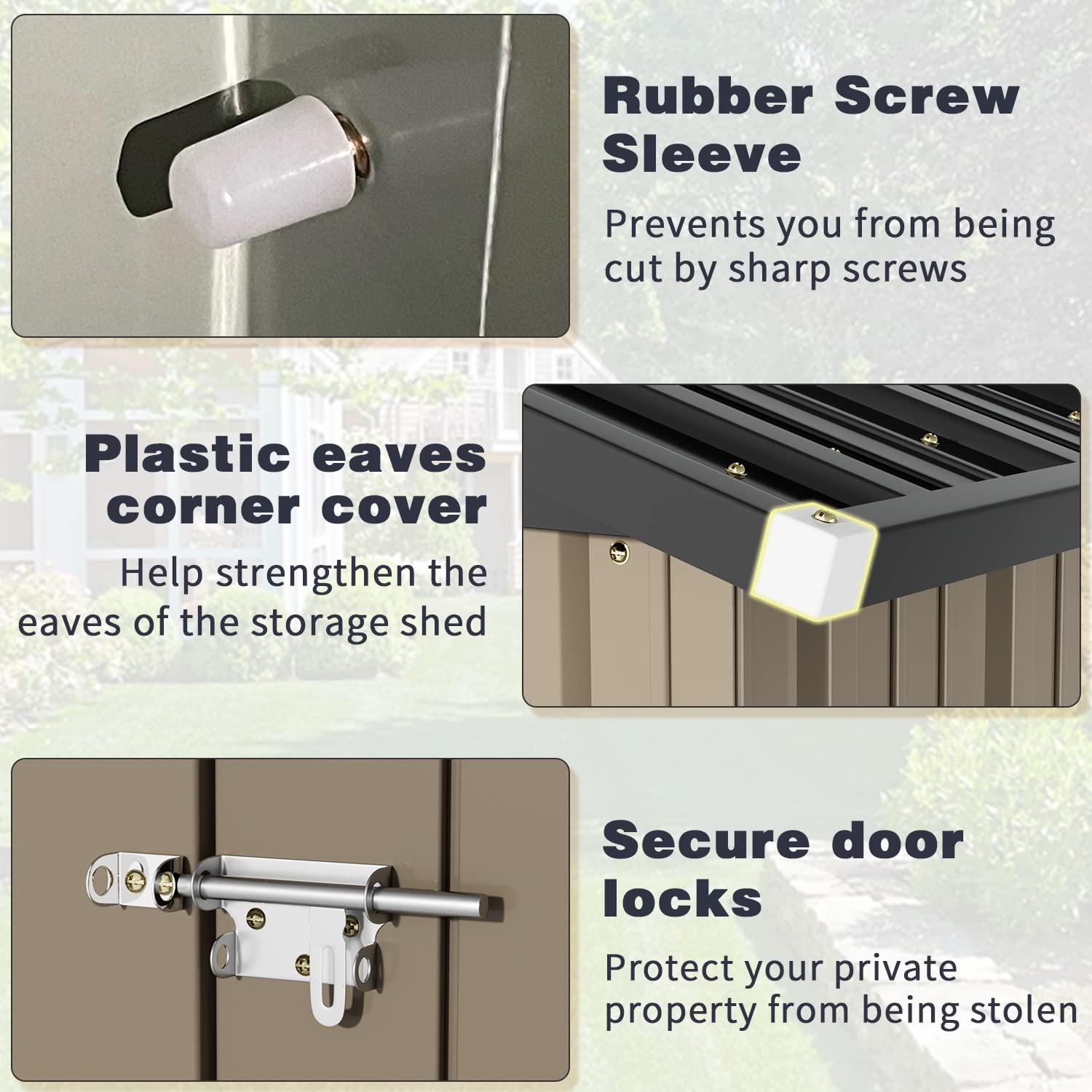 Greesum Metal Outdoor Storage Shed 6FT x 4FT, Steel Utility Tool Shed Storage House with Door & Lock, Metal Sheds Outdoor Storage for Backyard Garden Patio Lawn (6' x 4'), Brown