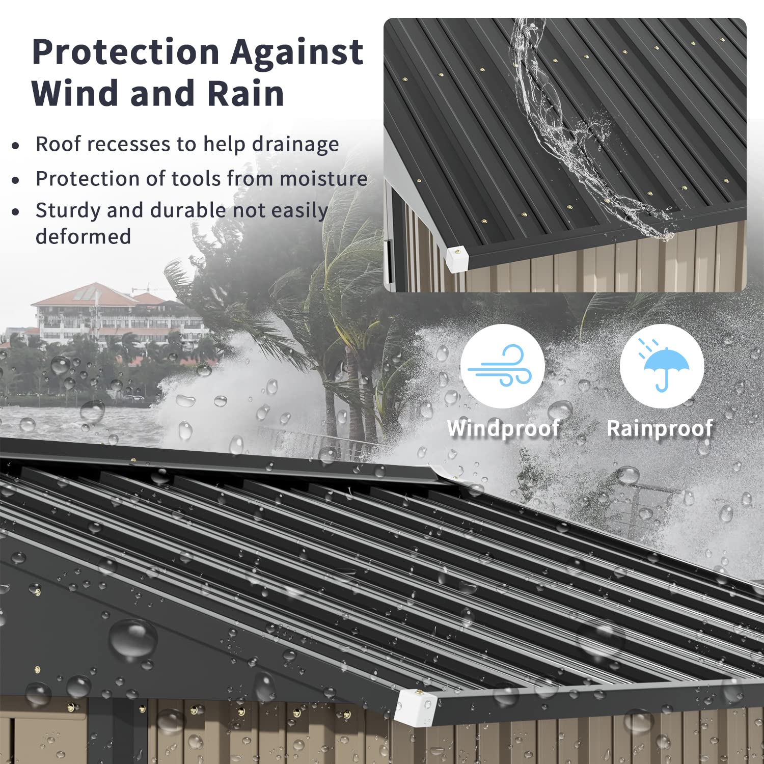 - Durable & Stable Storage Shed: Durable construction and thicker galvanized steel make this durable lifetime shed rust and UV resistant. The overlapping wall panels are water and moisture resistant for worry-free use in all weather conditions.