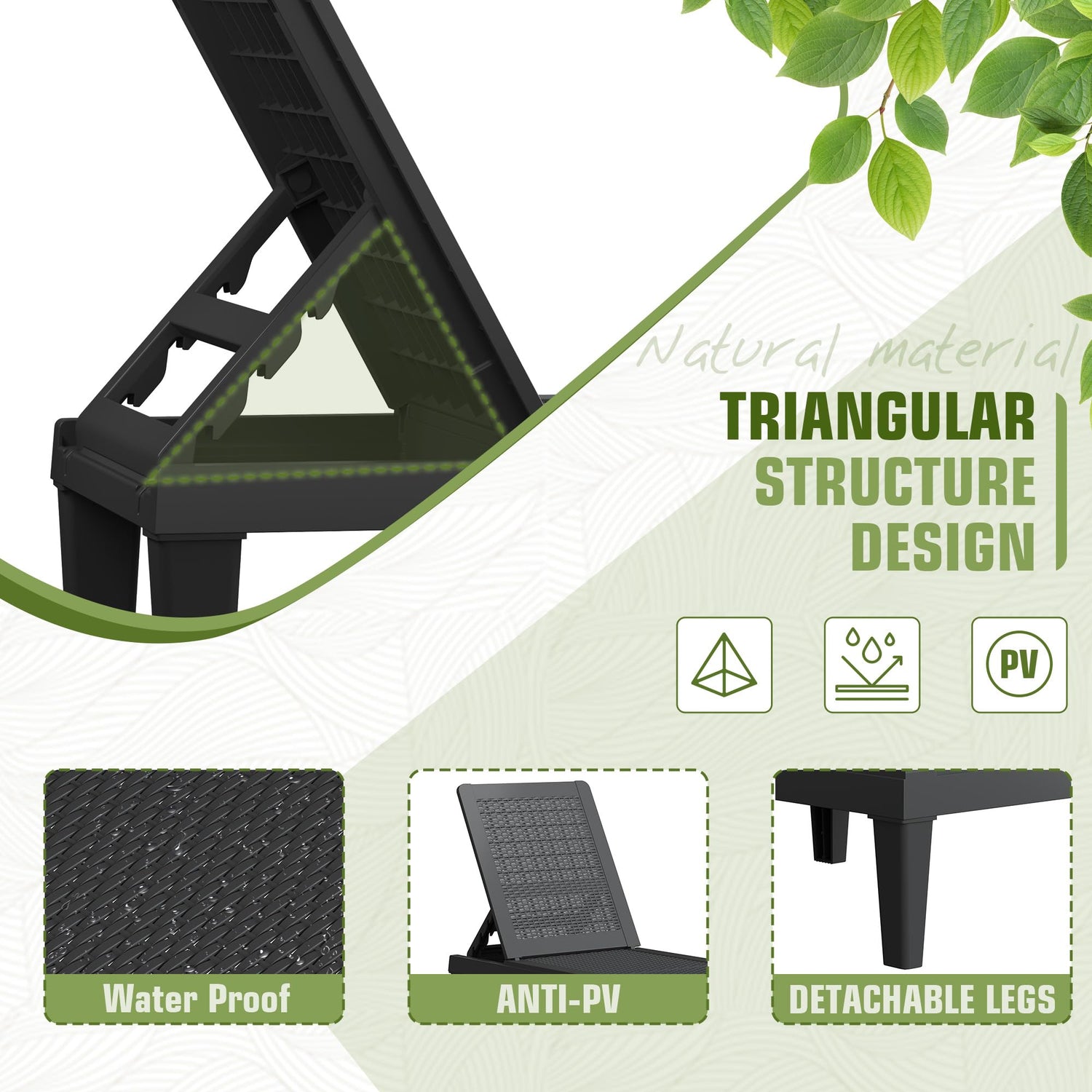 - Durable & UV Resistant: Crafted from polypropylene resin with an appealing wooden grain look, this lounger boasts a strong, non-bending base. It is UV-resistant to prevent fading and features a rust-free design without screws or bolts, offering better all-season protection compared to wood and metal.