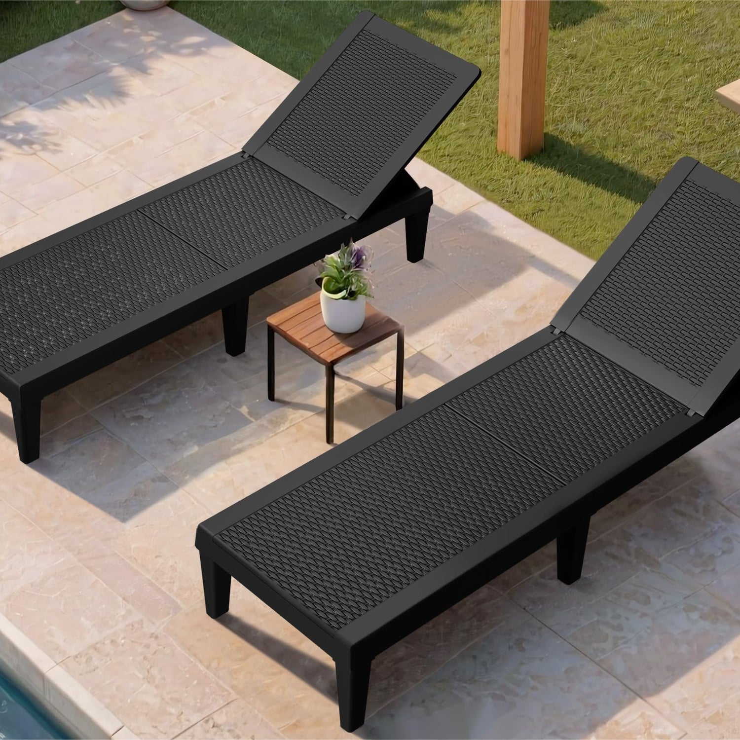 Greesum Outdoor Chaise Lounge Chairs Set of 2 with 5-Position Adjustable Backrest, Waterproof PE Sun Loungers for Garden Pool Beach Patio Deck Sunbathing, Black