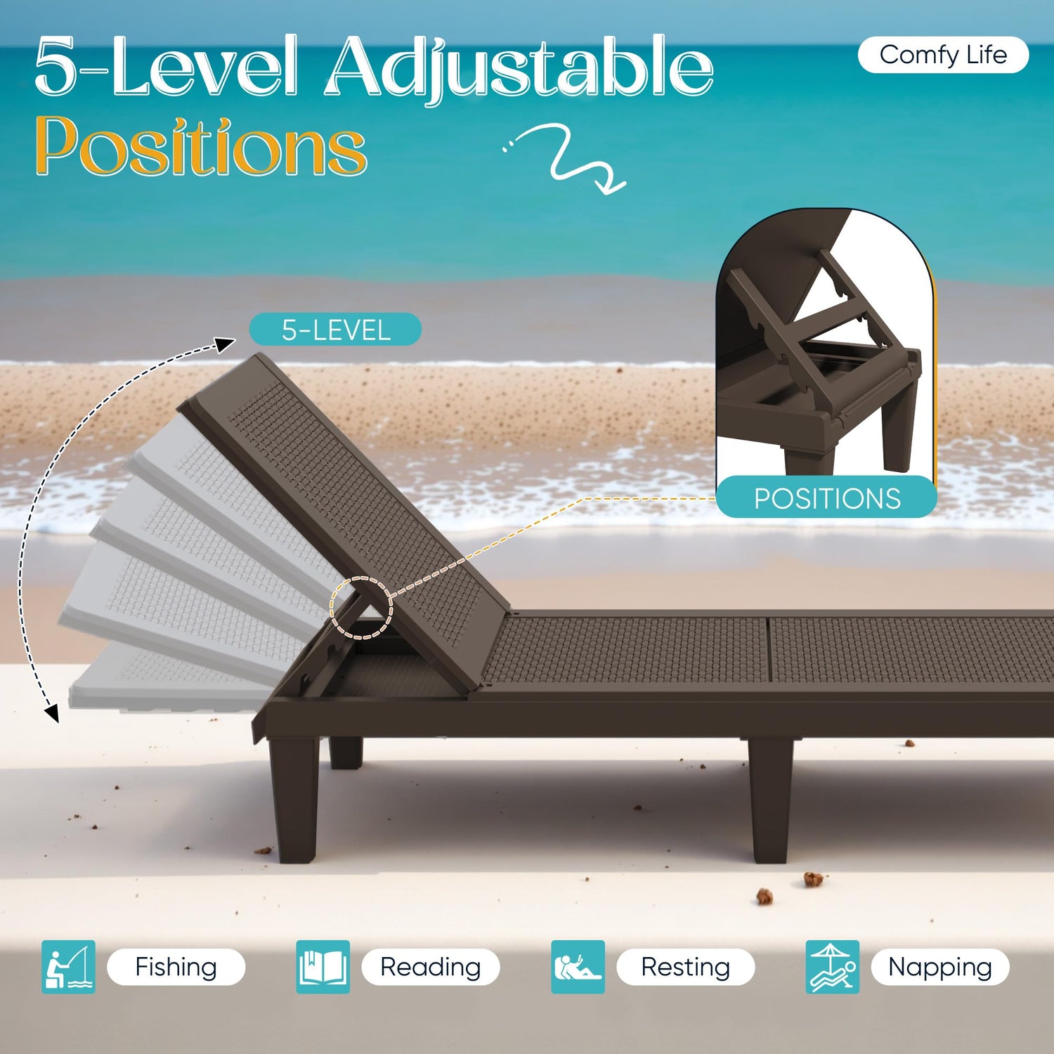 Greesum Outdoor Chaise Lounge Chairs Set of 2 with 5-Position Adjustable Backrest, Waterproof PP Sun Loungers for Garden Pool Beach Patio Deck Sunbathing, Brown