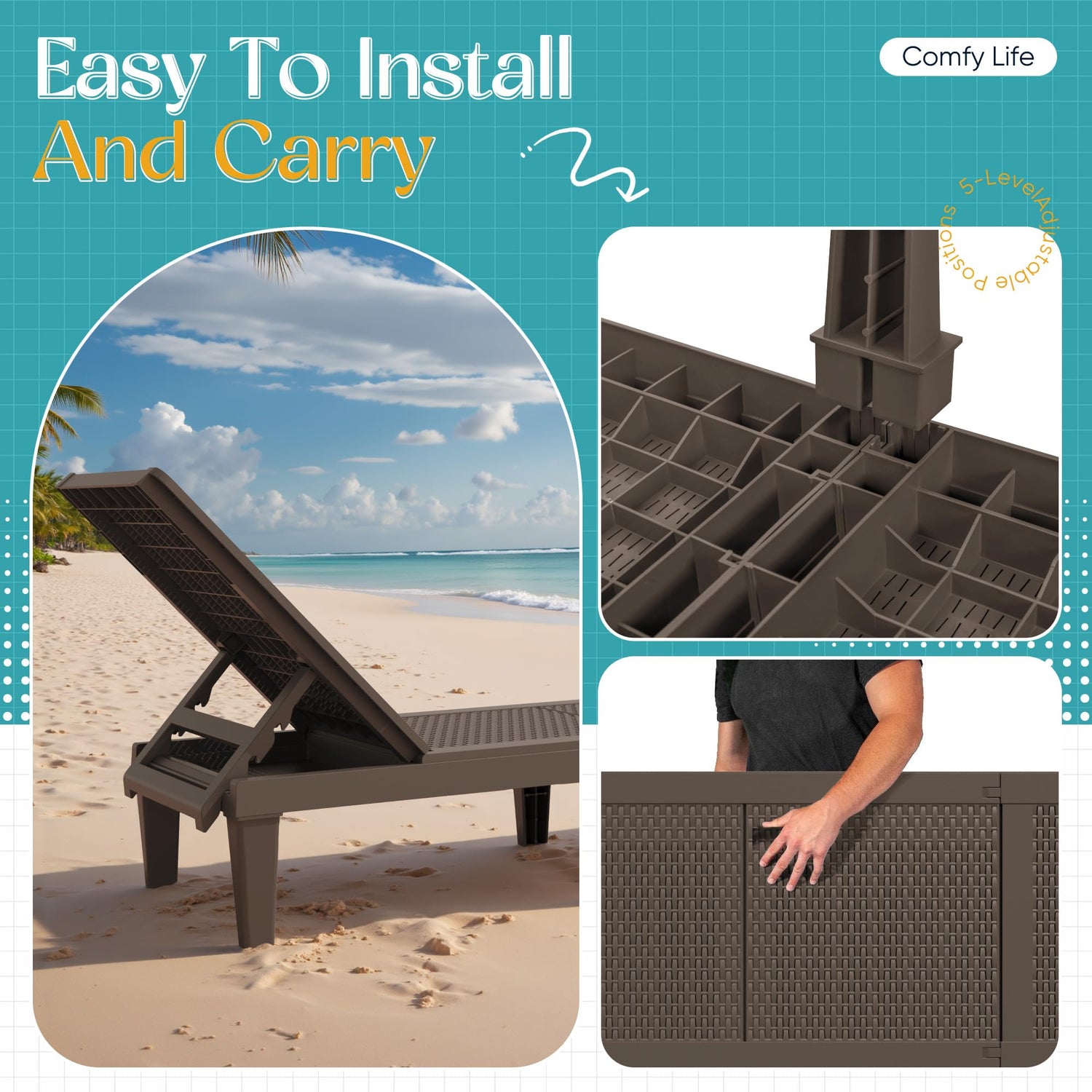 - Super Easy Assembly: Get a outdoor chaise lounge in just 3 steps in 3 minutes. Once you've assembled the seat, press the legs in, and then insert the backrest. No tools are required for the process.