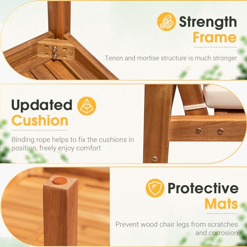 - Sturdy & Stylish Acacia Wood Frame: Crafted from high-quality acacia wood, the entire framework of this outdoor dining set exudes both robustness and elegance. The solid construction ensures stability and durability, while the sleek design complements any outdoor setting with modern flair.
