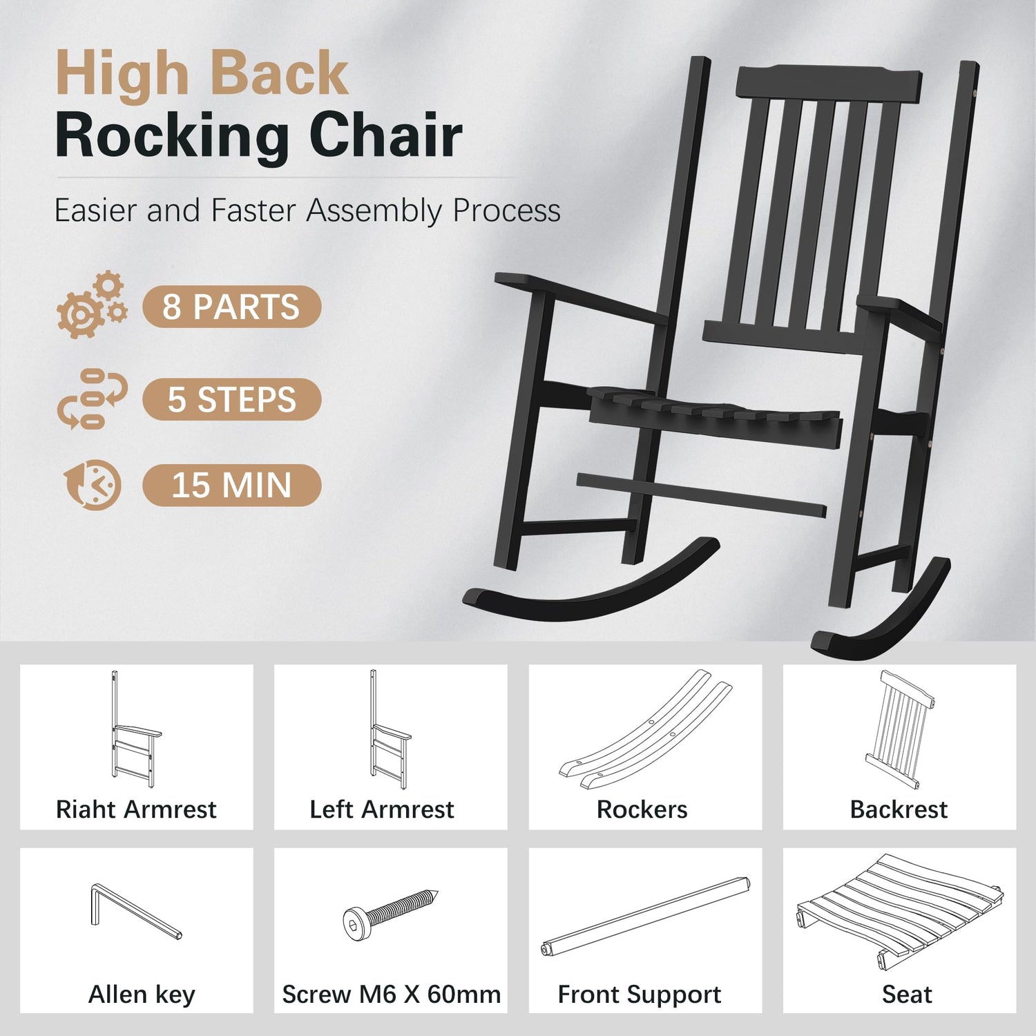 - QUICK ASSEMBLY: Installation is required, one person can get a perfect outdoor rocking chair in just 15 minutes, the installation process is very easy. Installation instructions are provided in our package (please note, do not tighten screws until installation is complete).