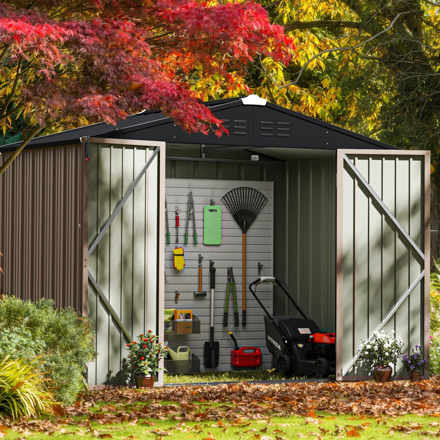 Greesum Outdoor Storage Shed 6 x 8 ft. Utility Tool Shed Metal Storage Garden Shed with Door & Lock for Patio Storage, Brown