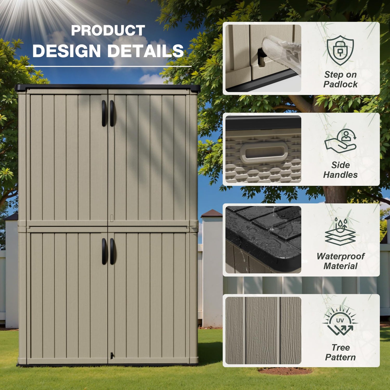 Greesum Outdoor Storage Shed Without Divider, 45 cu.ft Outdoor Waterproof Storage Cabinet for Garden Tools, Pool Storage, Garbage Cans, Beige