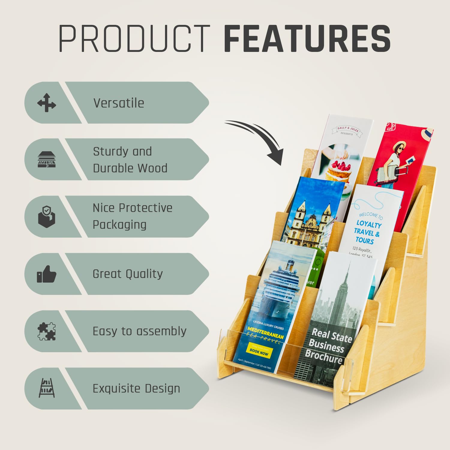 - Durable Elegance: Handcrafted from premium wood, this 3 tier brochure holder combines timeless style with exceptional durability, ensuring years of reliable use. Comes in protective packaging so it arrives in pristine condition, ready to enhance your space.