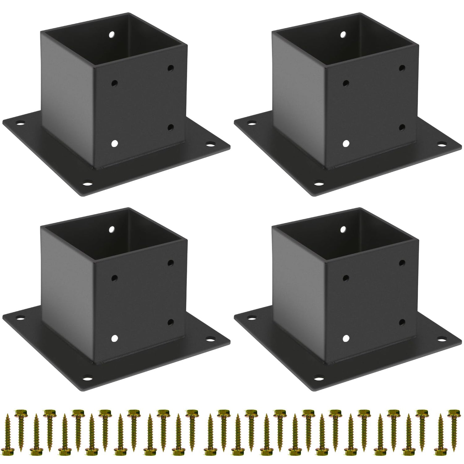 Grehitk 4×4 Post Base 4 Pcs,Deck Post Brackets,Inner Size 3.5"x3.5" Thick Steel Fence Post Anchor Base,Black Powder Coated Heavy Fence Post,for Supports Porch Railing Post Holders Pergola Brackets