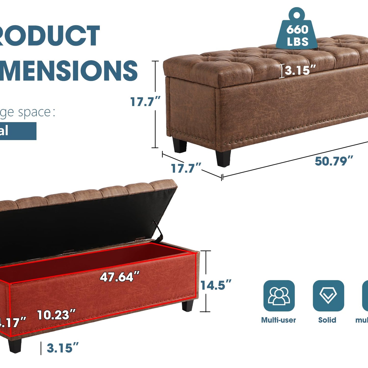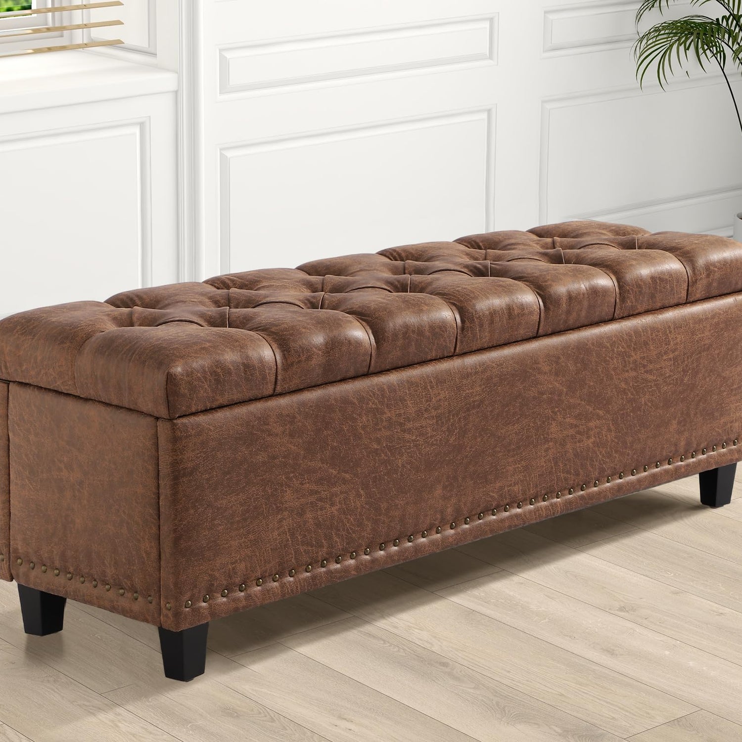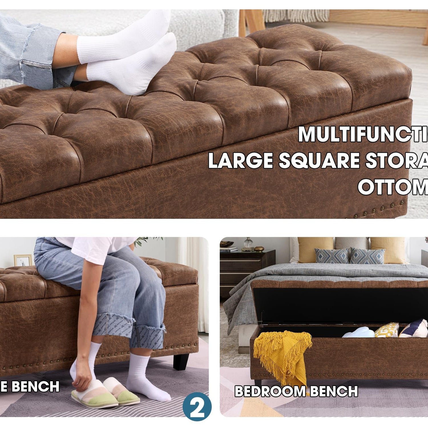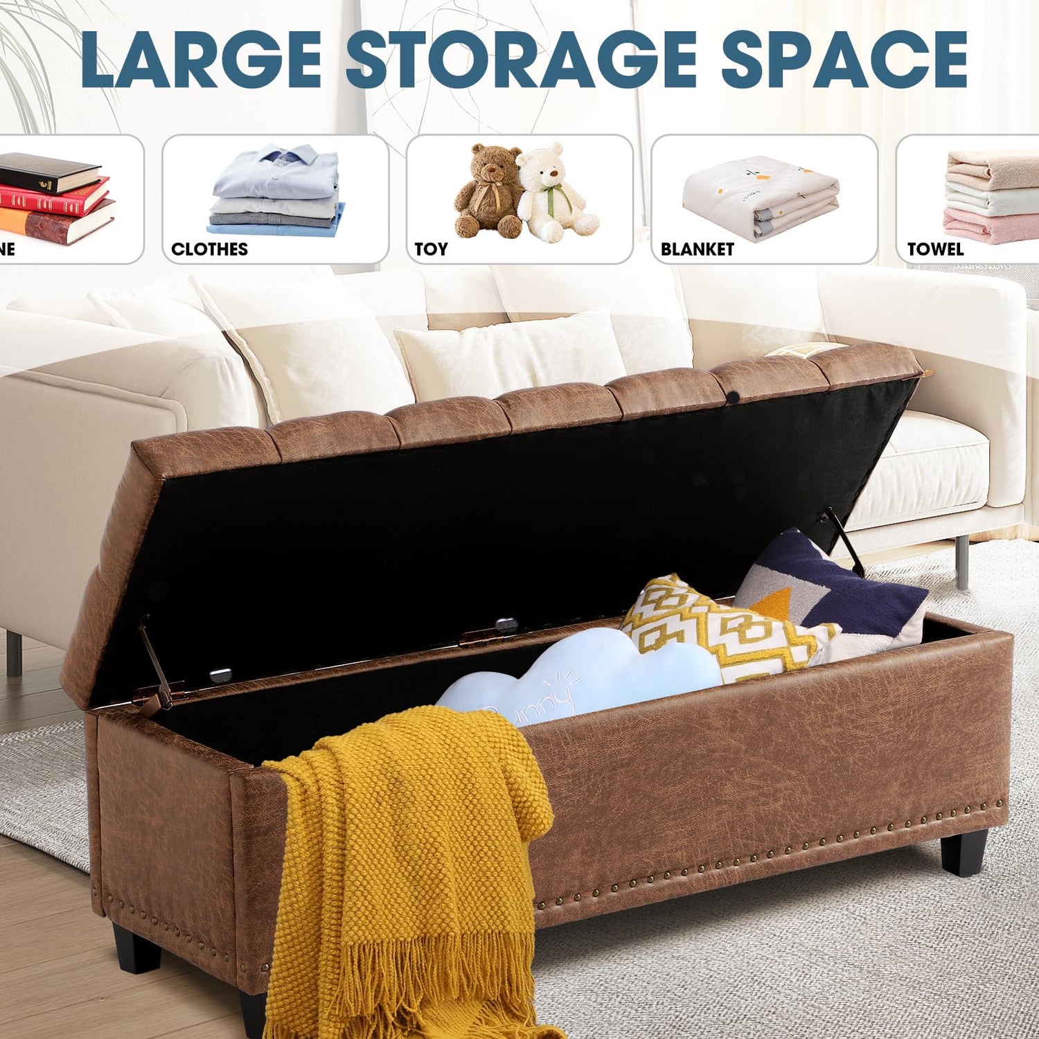 Grepatio 51" Ottoman Storage Benches, 30 Gallons End of Bed Storage Bench, Large Rectangular Ottoman, Button-Tufted Ottomans with Storage for Living Room Bedroom, Foot of Bed (Brown)